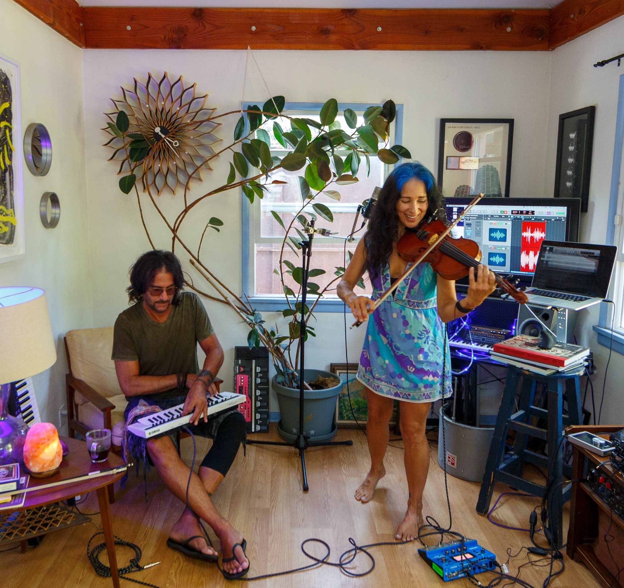 I play violin, cello, guitar, keyboards, sing and compose a variety of styles of music. I can read music but I really love to improvise and write my own parts. I have written solo violin pieces for tv shows such as CW’s The Originals, Pretty Little Liars and the Stargirl Series, and composed music for ABC’s The Fosters and Fox’s Bones, I record and produce these compositions in my home studio in Venice. I really love to create and record music by myself and with others… I also have an intense passion for performing live. Improvisation can be a conversation with other players and the audience. It is such a rush to tune into the space, listen to what is happening and add energy to the mix by feeling my way to the notes. The right frequencies and sounds can completely shift our perceptions, helping us to connect to our deeper self and each other. As a musician touring with the biggest acts in the world for years, I have long recognized the healing powers of music. My study of frequency, intention and resonant heart-mind entrainment has led to learning and developing a unique approach to sound healing. I love creating original music and sounds using traditional string instruments with specially tuned machines, synthesizers and effects, combined with powerful intentions to create a variety of flow states and assistance for healing and recovery.