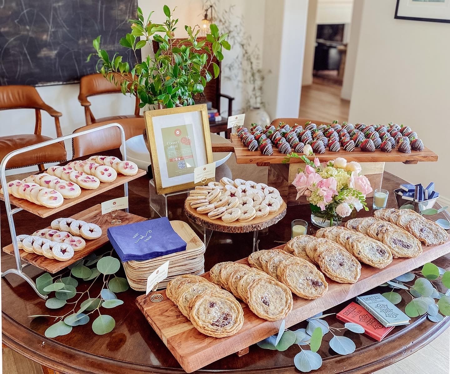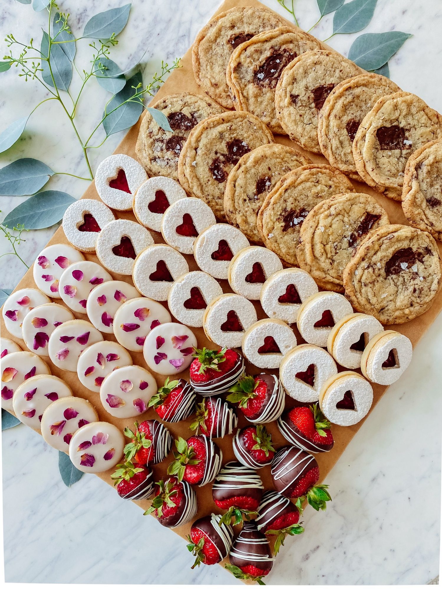 At The Seed, we specialize in making gourmet and locally sourced appetizer and dessert boards for order and curate custom grazing tables. We are based in Van Nuys and offer everything from cheese & charcuterie, farm-fresh crudités, seasonal fruit boards, an epic bagel board, mini sandwiches, and various dessert options such as chocolate-covered strawberries, cookie boards ranging from chocolate chunk cookies with sea salt to rose tea and linzer cookies which we bake fresh in-house. We also create seasonal cookie boards for various holidays such as Valentine’s Day, Easter, Mother’s Day, Christmas etc. and they’ve been incredibly popular.