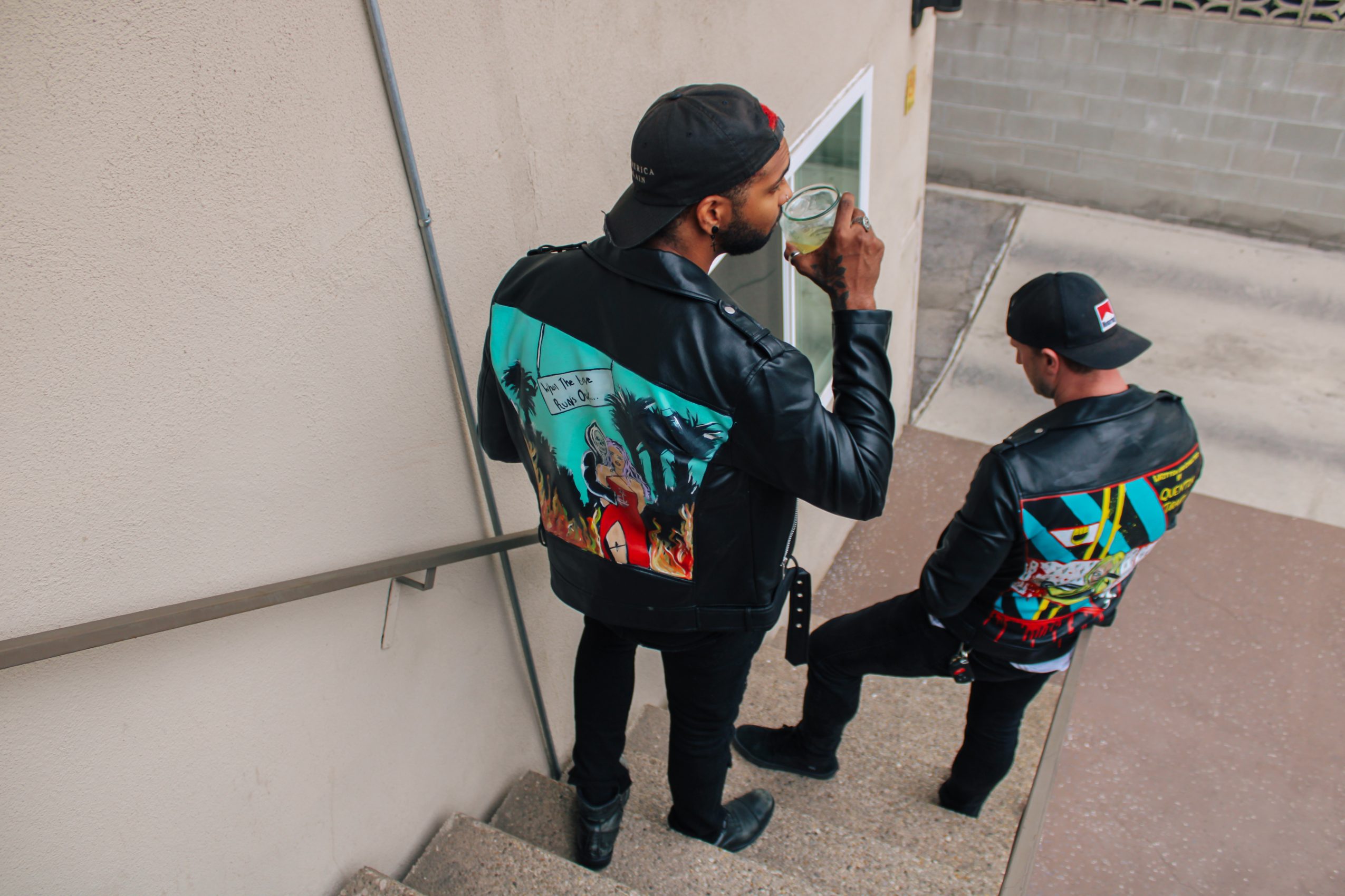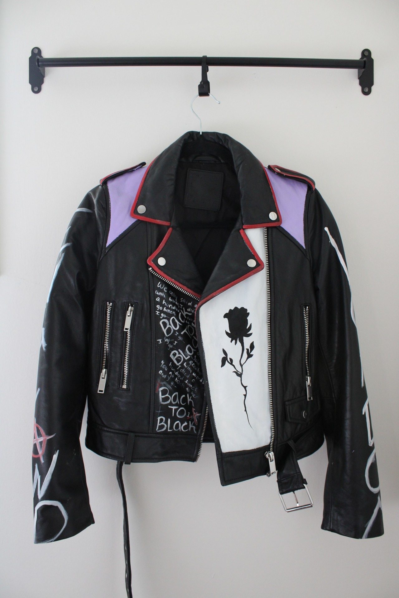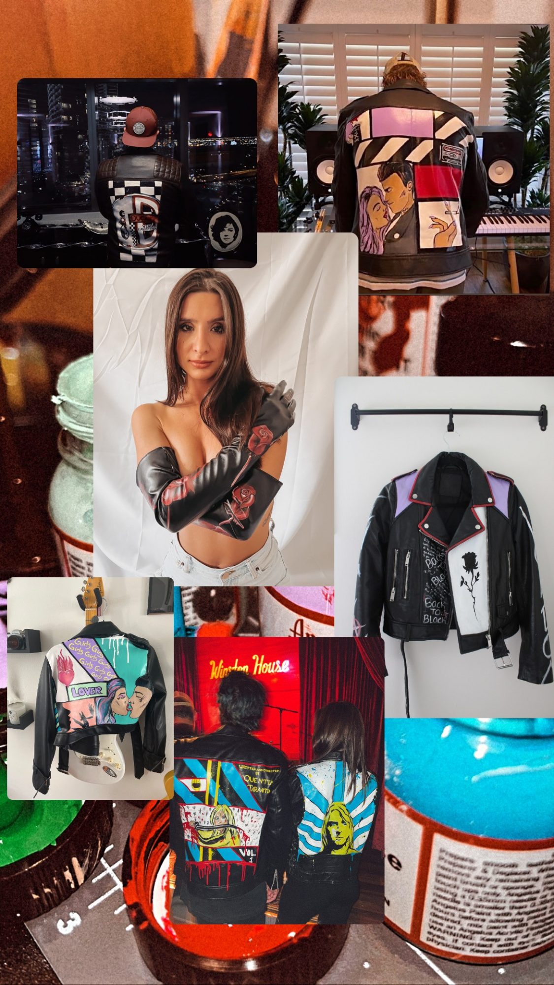 It was about two years ago when I was a little lost in the city of angels, didn’t really know where I fit in here but always made sure to look good even if I didn’t have a clue what I was doing, I always had a leather jacket and a cute pair of heels on. It was around this time that I had unexpected lost my father which made my world shatter. I was a walking zombie for about seven months just going through the motions of loss. It happened to be my best friend’s birthday and I wanted to do something really nice for him for keeping my head afloat during this horrible time. He has always admired G-Eazy fashion sense and particularly his leather jacket collection. I hunted for weeks to find him the perfect “worn in” leather jacket and finally struck gold on Melrose. I knew he had always wanted a painted leather jacket so I was searching for an artist and had no such luck when my friend reminded me that I used to paint a couple of years back. I ended up doing a Geazy/slipknot mashup on the back and it was the first time in months my brain had shut off and I could just enjoy the moment. Even though it seemed something so small but creating that piece on that jacket was the first time I had felt like myself again after losing my father. Every time he wore the jacket, he would get stopped and people were amazed by it, I was surprised people liked my work. It took me about a year to get the courage to start making and creating more of these pieces. It all finally clicked for me, I wanted to become a designer.