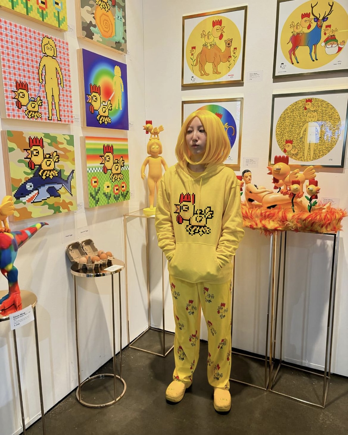 My art brand Mutated Chicken® was inspired by the most curious thing that happened in my childhood or perhaps in my life period; as I mentioned earlier my grandparents had hens in their backyard; when I was about five one of the chickens was born with a third leg, a consequence of a rare but not unique mutation. This godly creature left on me such an impression that many years later, when I decided to be an artist I chose the motive as a pivotal theme of my entire art opus and the name for my brand. Hence you find the character of Mutated Chicken in every and each of my products. The main branches of my brand are paintings and sculptures, both products of innovative techniques including 3D printing, advanced computer programs and robotics. The brand includes also limited edition art prints, collectable art toys, animation, NFT, fashion products, and virtual reality in physical universe and Mutated Chicken® Metaverse alike.