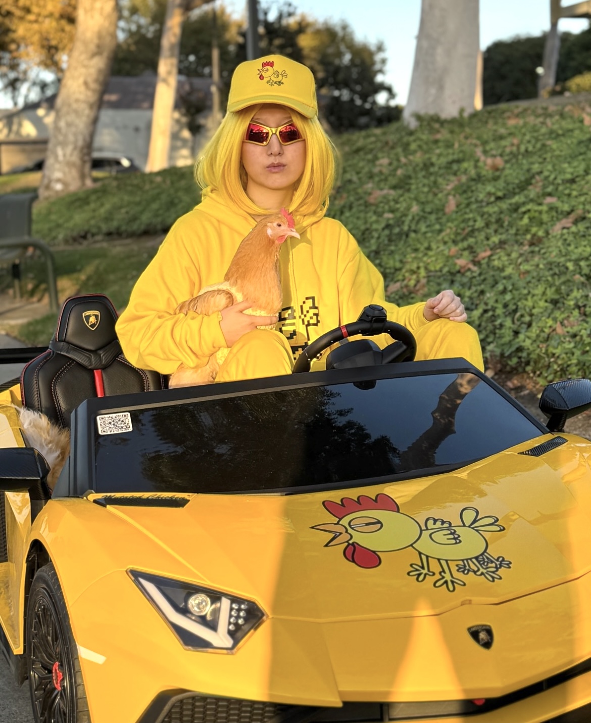 It is having a pet chicken and being surrounded by all kinds of cute animals; I spent my earliest childhood living with my grandparents who lived in a suburban area where there were lots of animals of all kinds; grandparents had hens and a rooster and other birds, cats and dogs; I would see neighbor’s cow passing by every day, pigs, ducks, foxes, all kinds of reptiles and amphibians and fish and crabs in a small river. Those were the happiest times of my life. When I turned ten I moved with my parents to a city and after that for many years lost contact with animals. When a few years ago I moved to Irvine, the greenest and the most animal friendly city I’ve ever seen, the connection was reestablished; birds, squirrels and lizards would come to my garden every day and interact with me. Even a duck made a nest in my garden. But the most important of them all was my pet MuCh (short for Mutated Chicken), a house chicken that followed me everywhere I went, be it a store, restaurant or a bank. When I would work she would sit next to me the whole time and keep me company. It seems Much and other animals rekindled in me that childish joy that I’ve lost touch with after I moved from my grandparents’ and which also acts as the main inspiration for my artistic work. Much unfortunately passed away in May and big part of that happiness is now gone. I’ve decided to get a new one soon as daily interaction with cute animals really brings more happiness than anything else.