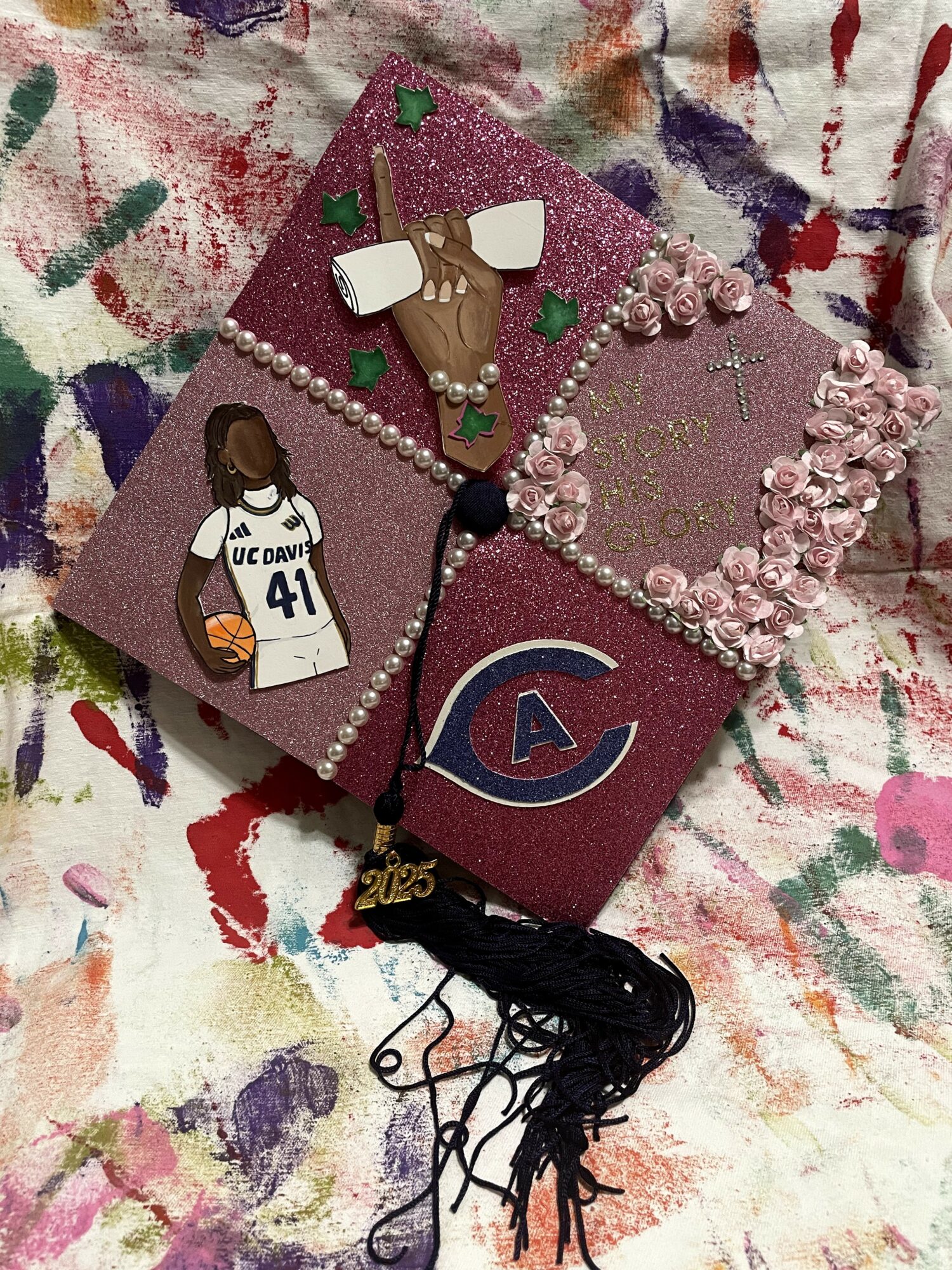 Hi Friends! My name is Kaila Romei and and I’m the owner of Made By Romei, a custom art and clothing business. I was born in South Jersey and moved out to Cali to start my education at UC Davis and also have a real shot in the art world. I started drawing in middle school, copying mangas, comics or anything I could get my hands on. From there I found a love of art and started painting in high school. I then went on to create Made By Romei in 2018 as an entitiy to channel my love of art and share it with the community. I mostly enjoy not just creating custom works for your walls but specifically for you to wear. I feel like wearable art is a statement. My favorite pieces to create are grad caps, dad hats and fitteds, shoes and jeans. I also really love making pieces with my son, who is now starting to find his spark in life too.