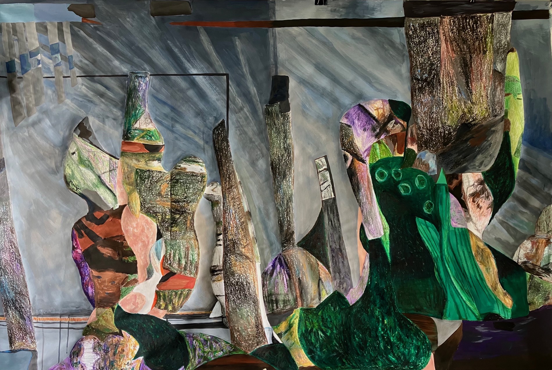 My work is deeply rooted in art history, with influences ranging from Caravaggio and Dürer to CoBrA, Art Brut, and Surrealism. Collage is at the heart of what I do—it allows me to tap into the unconscious and create narratives that feel a bit like dreams. Right now, I’m working on a “tribe” of large-scale paper figures—towering, lightweight, hand-collaged characters suspended like a playful family of gentle giants. Each one has its own identity, but together they form an invented lineage. My latest solo exhibition “Tribulations”, just opened in Las Vegas and as I was saying, was recently reviewed by The New York Times T Magazine.