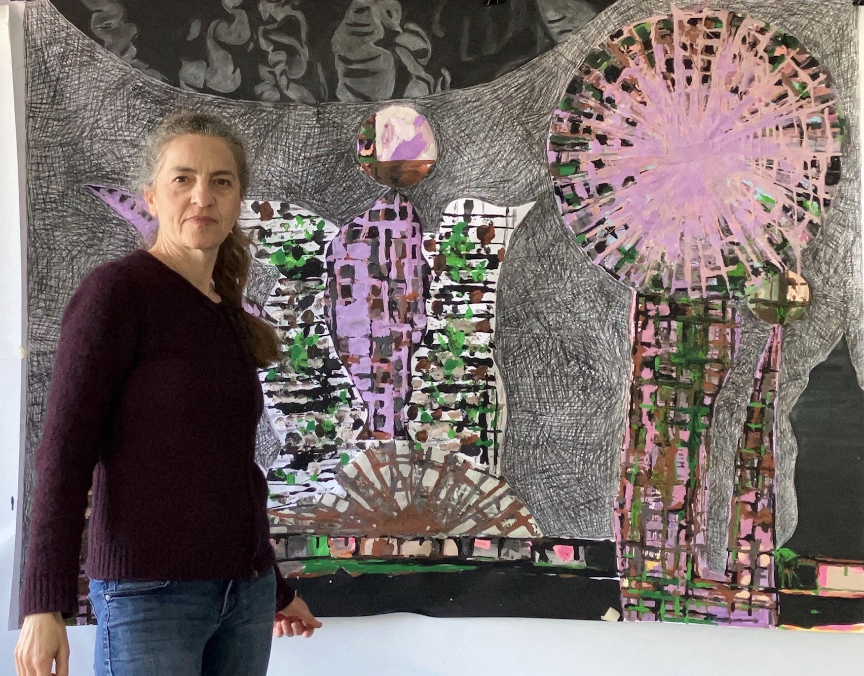 I’m an interdisciplinary artist, working across collage, painting, assemblage, video, and sculptural installation. Since I also have a long background in health and science, I like to think of my studio practice as a kind of research lab: each project starts with a hypothesis or a vision, and I experiment with materials and techniques—sometimes inventing my own—to see where it leads.