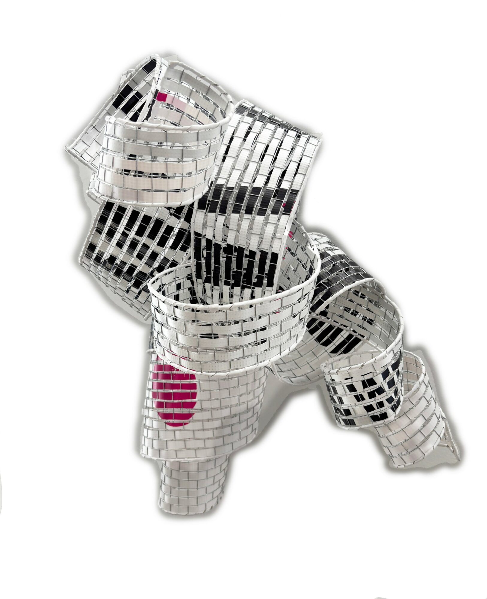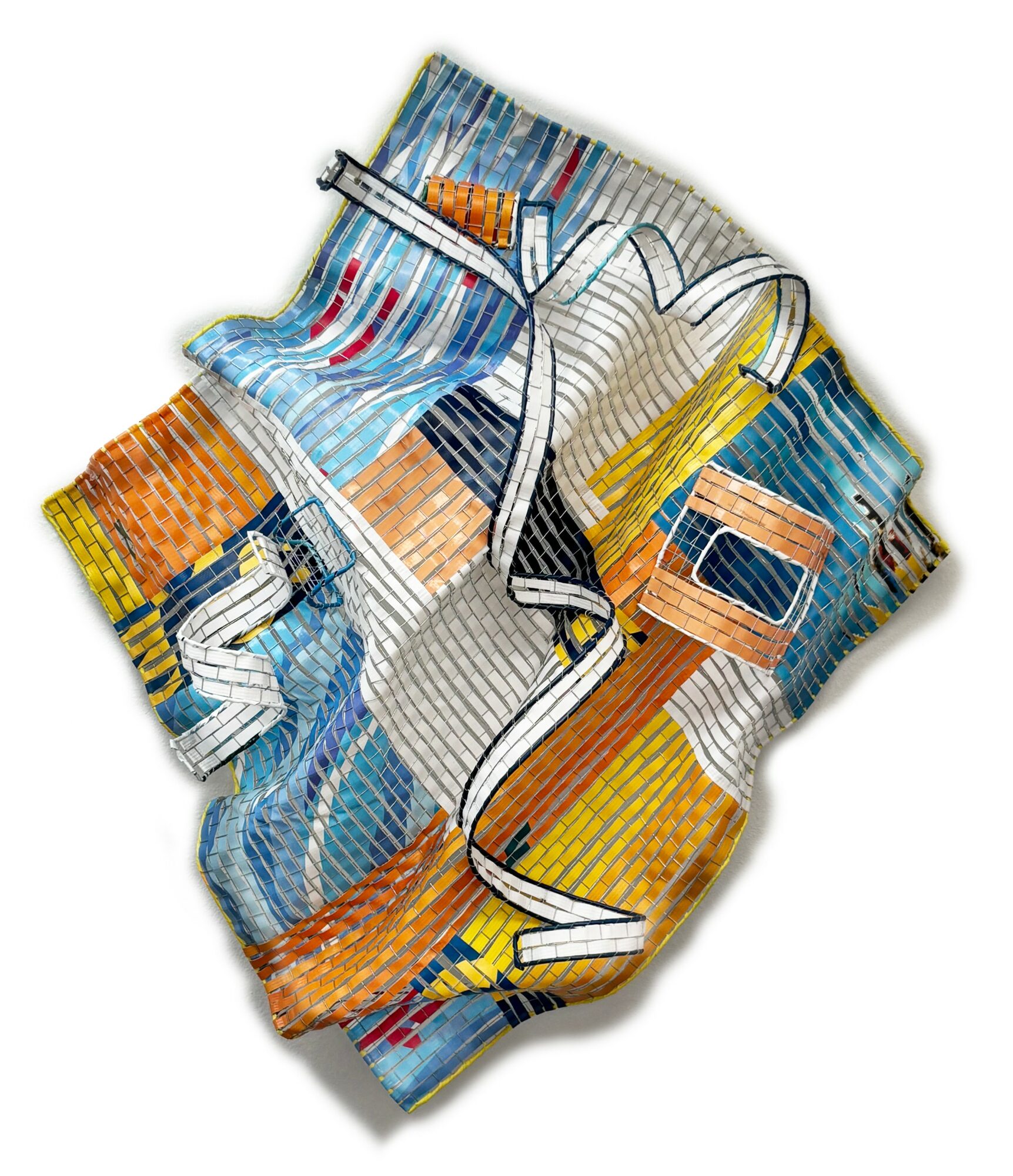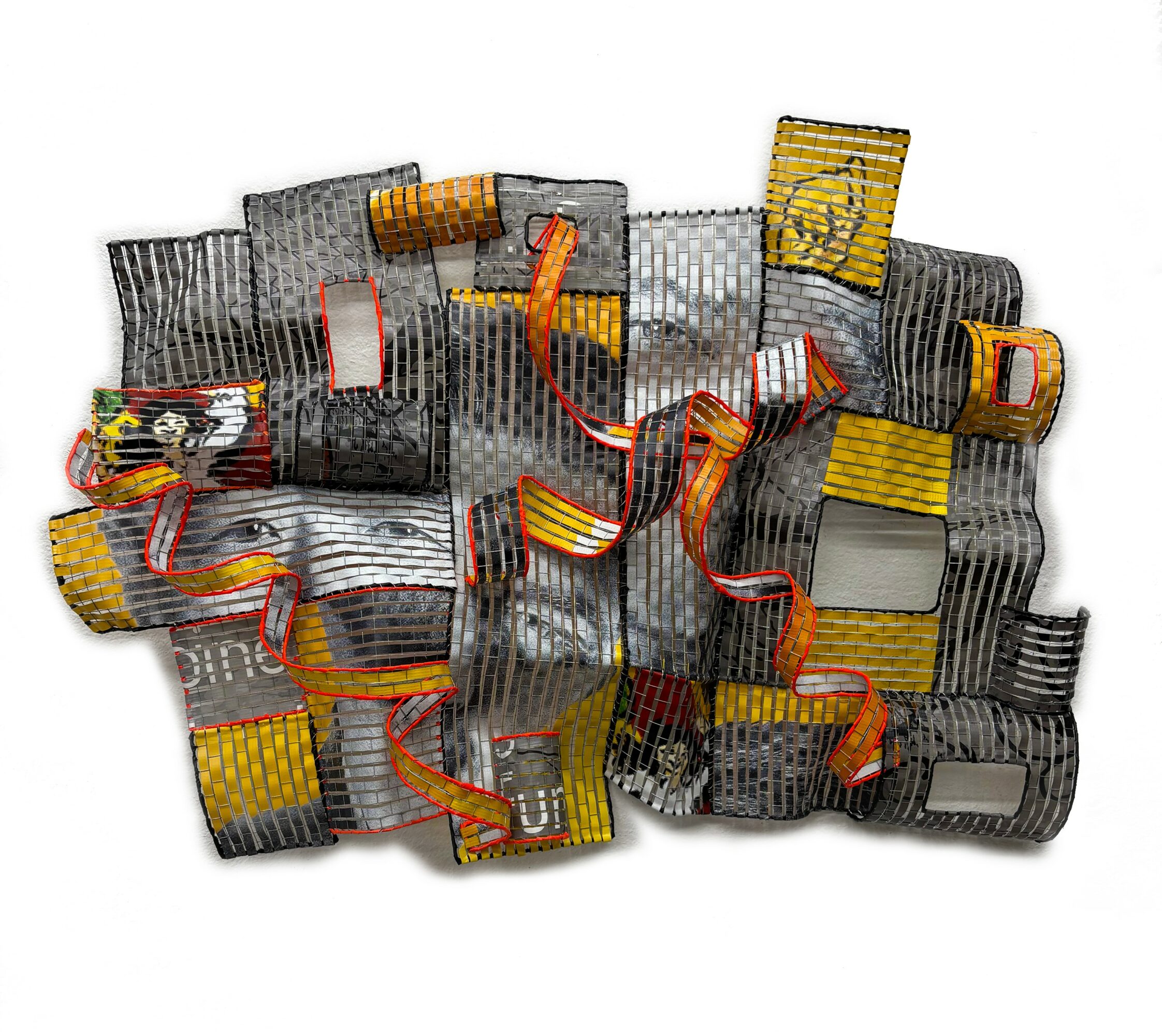 Currently, I work with discarded vinyl street banners, transforming them from tools of commerce into works of art that reflect on our consumer-driven culture. These banners, which often end up as waste and pollution, are given a second life in my studio. Through weaving, cutting, and reshaping, I create pieces that are both visually striking and deeply tied to sustainability. My goal is to take what was once destined for a landfill and reimagine it into something meaningful, beautiful, and enduring.