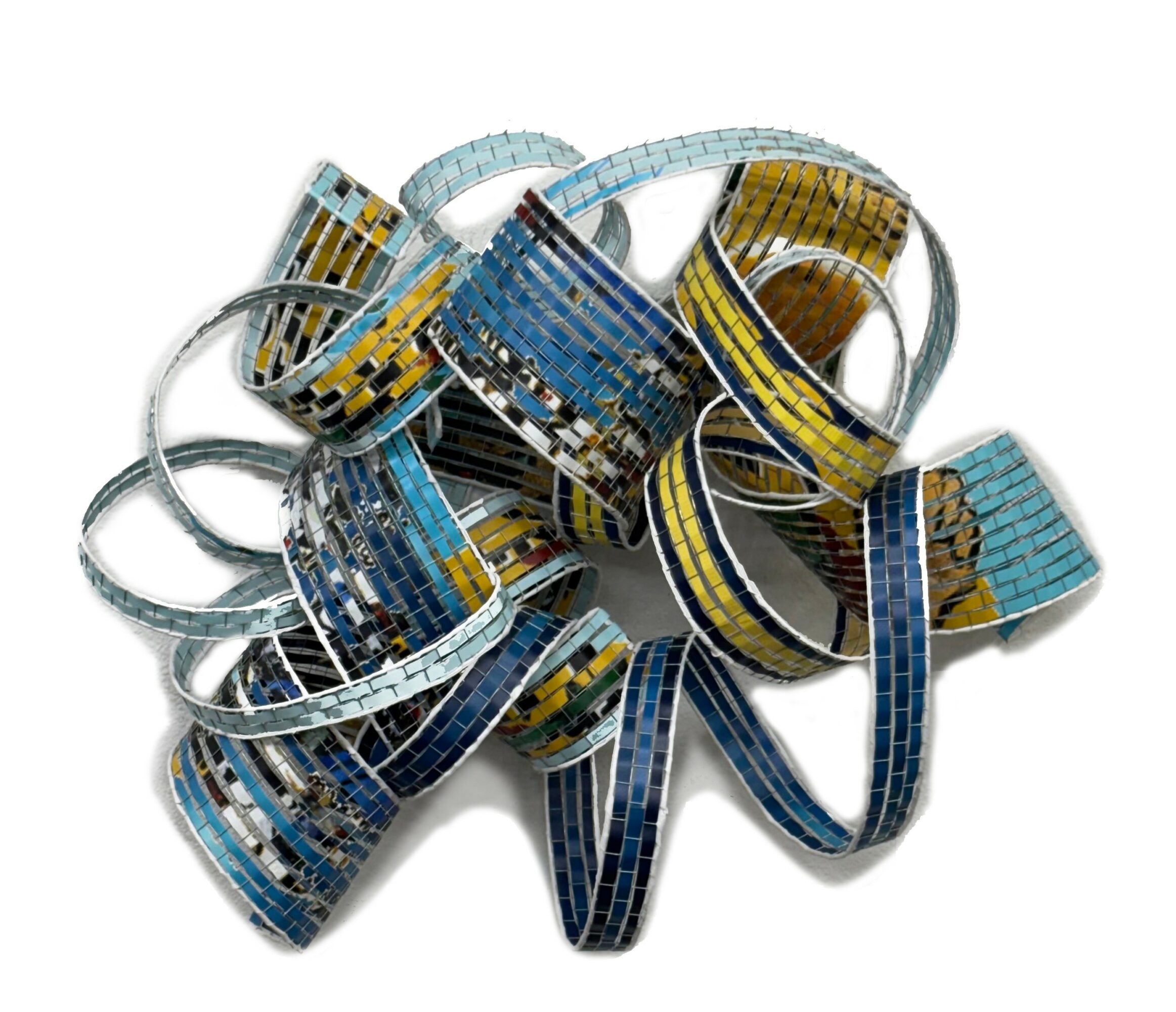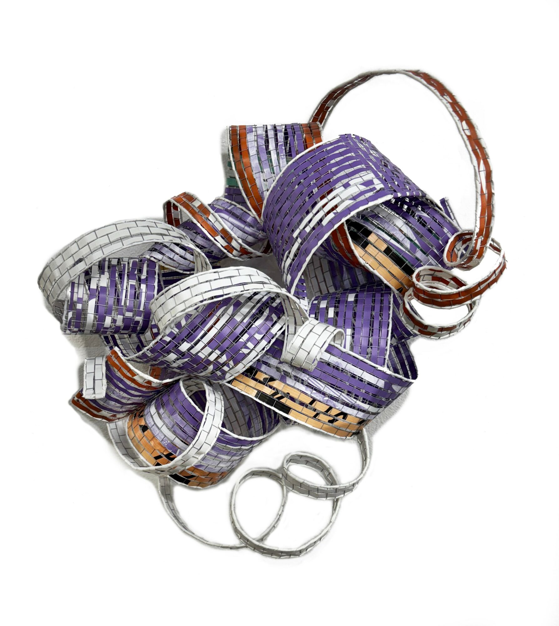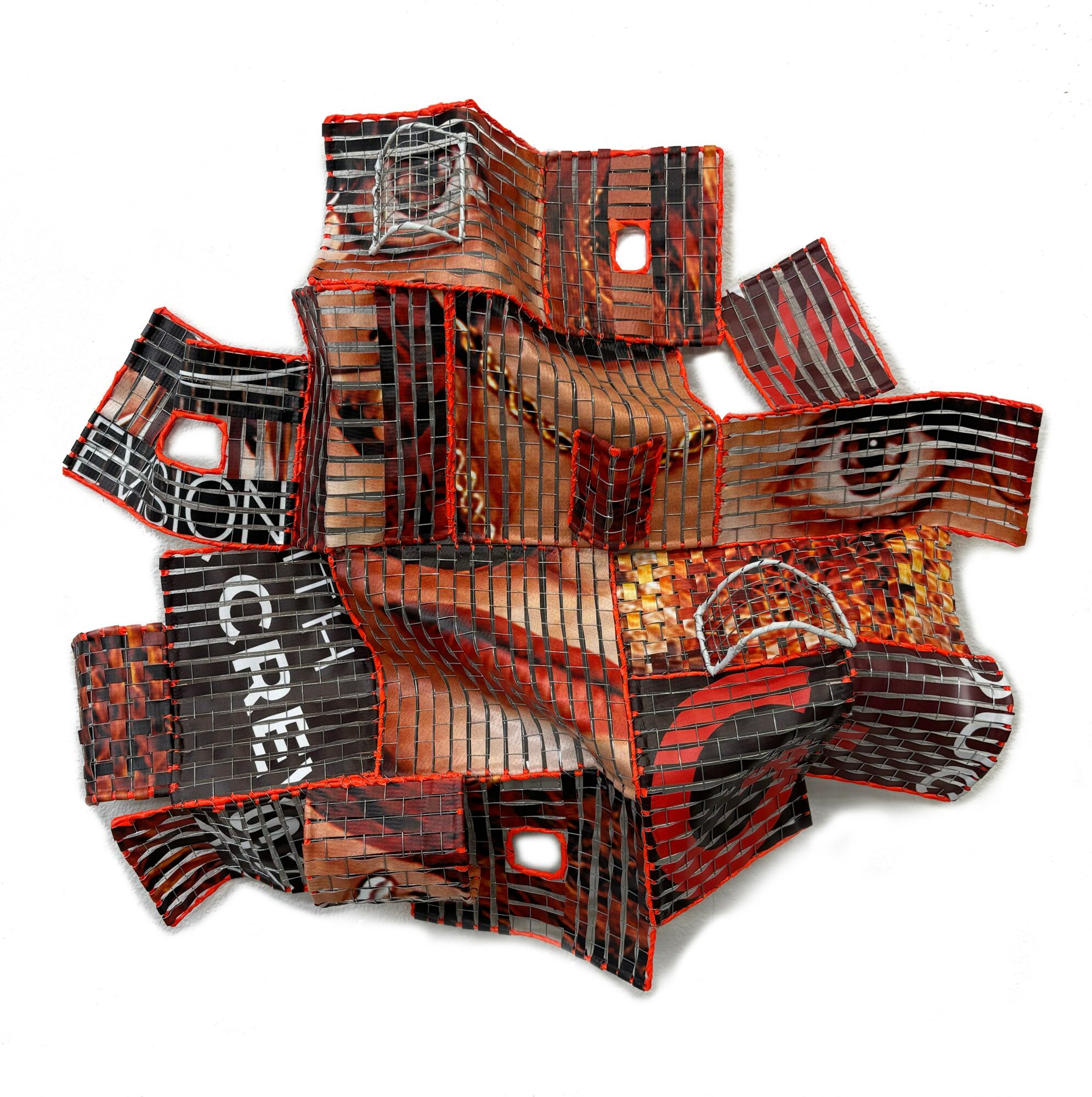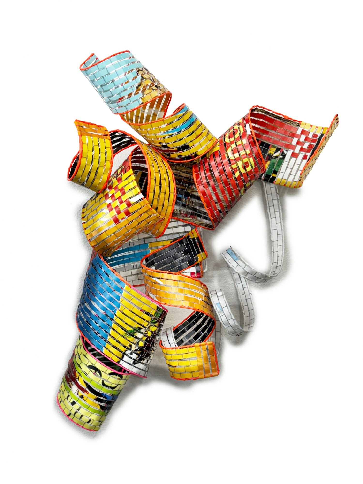 Currently, I work with discarded vinyl street banners, transforming them from tools of commerce into works of art that reflect on our consumer-driven culture. These banners, which often end up as waste and pollution, are given a second life in my studio. Through weaving, cutting, and reshaping, I create pieces that are both visually striking and deeply tied to sustainability. My goal is to take what was once destined for a landfill and reimagine it into something meaningful, beautiful, and enduring.