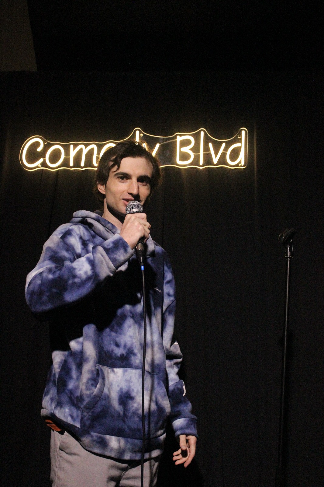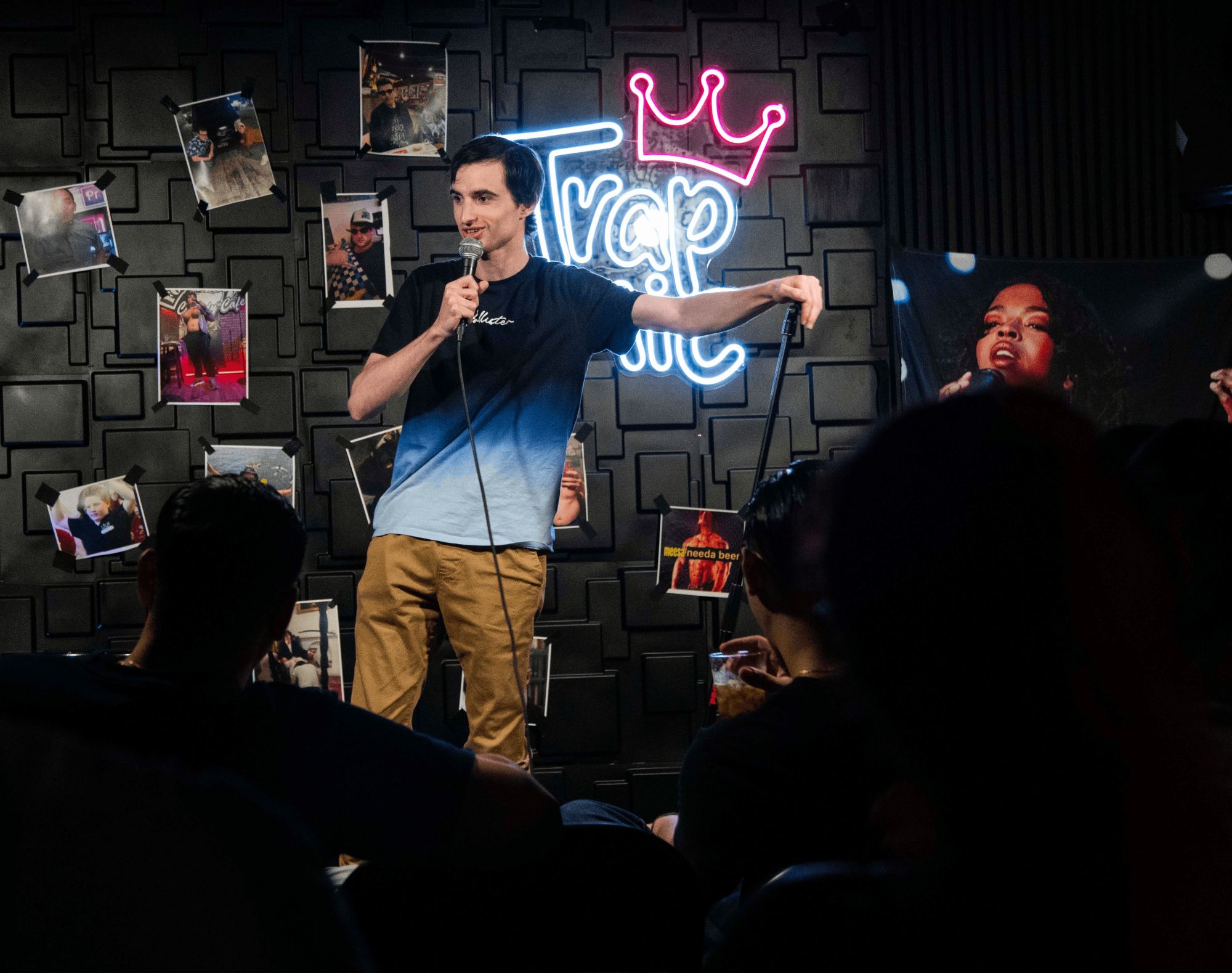 I rushed over to my uncle’s place, and I spent a year and a half taking care of my grandmother while living in the loft. I had to wake up early every morning to feed the dogs and my grandma, then drive her to the doctor’s office a few times a month. I had a rough time dealing with my grandmother because if you think cancer is scary, then you have no idea what it’s like dealing with a person taking opioids. I got a job at the IP Law Firm while taking care of my grandma. I started a podcast in 2023 called The Midnight Bar, a comedy series about the unexpected moments in my life. My friend Michael Olson helped sound engineer each episode while being stuck in bed. Afterwards, I attended the Limelight Acting Studio for 2 years, where I studied acting and voiceovers with Kristin Pitts and Tania Gunadi. I felt reconnected to my passion, and my acting coaches always encouraged me to try stand-up comedy. I discovered that landing a single role was difficult because my voice sounded younger than my age, and my facial features didn’t match it. I left my acting school in 2024. I moved back in with my father to start over after my bad past. I decided to give stand-up comedy a chance because I fell in love with storytelling and writing comedy sketches.