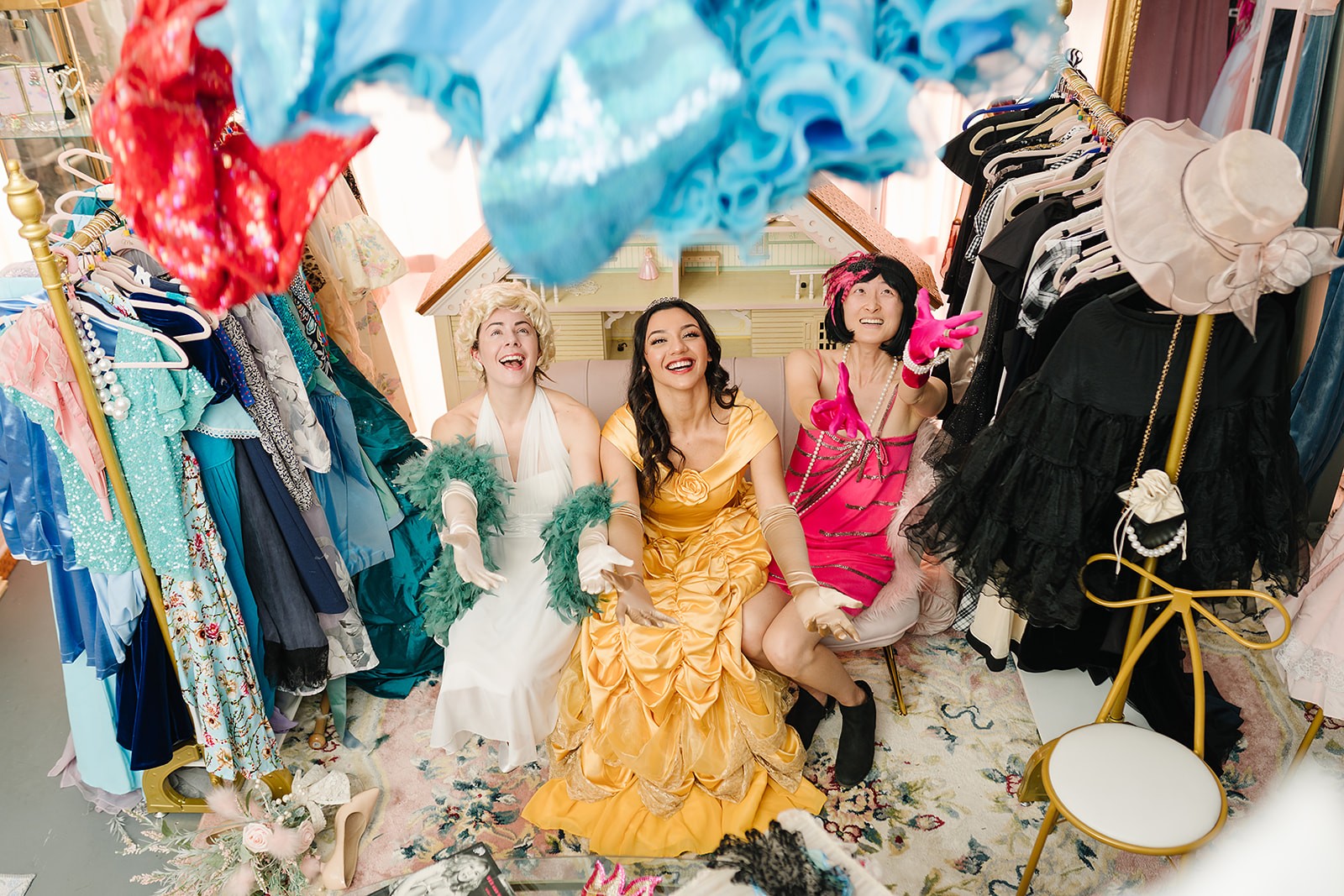 - $40 per person to play dress up in our space for 1.5 hours. (Try on as many costumes and wigs as you can and take photos in front of our backdrops.)