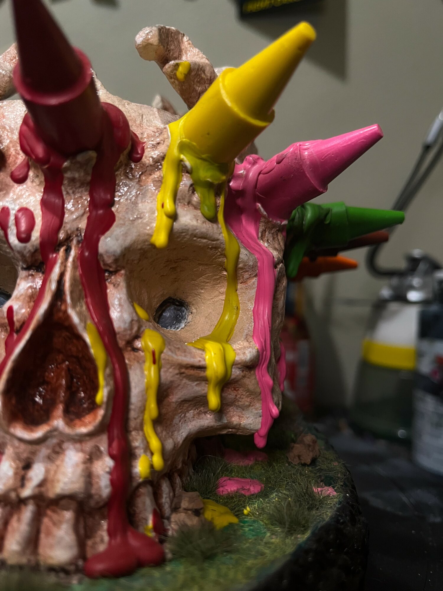 I am most proud of my paper mache sculptures. They have evolved and gotten better every reiteration and i have learned a lot about my own creativity and ingenuity. I love every step of the way, from making the materials like the paper paste and clay to using a Dermel tool to sand in the details. I try to add new features to every sculpture like lights, music boxes and mirrors.