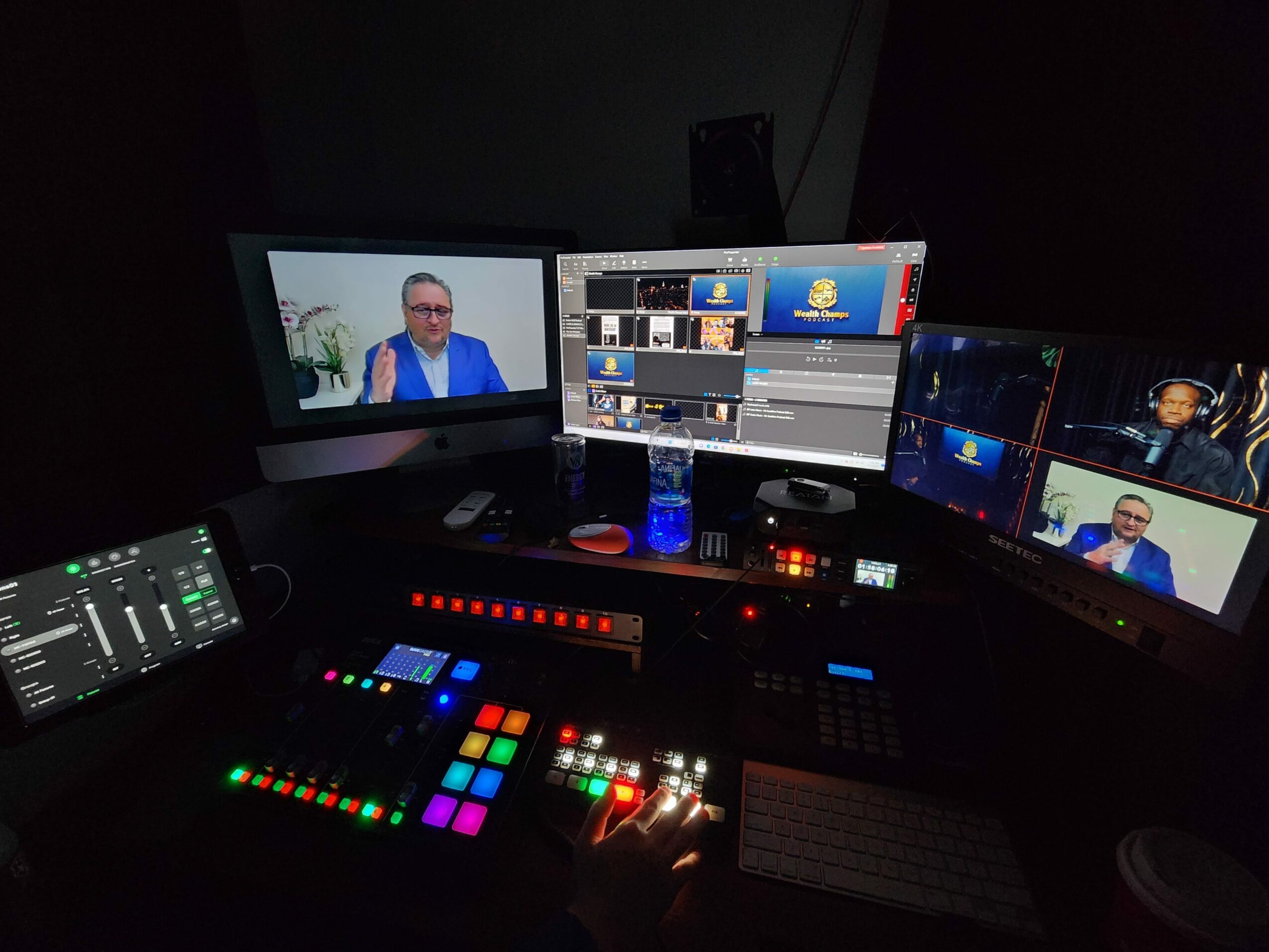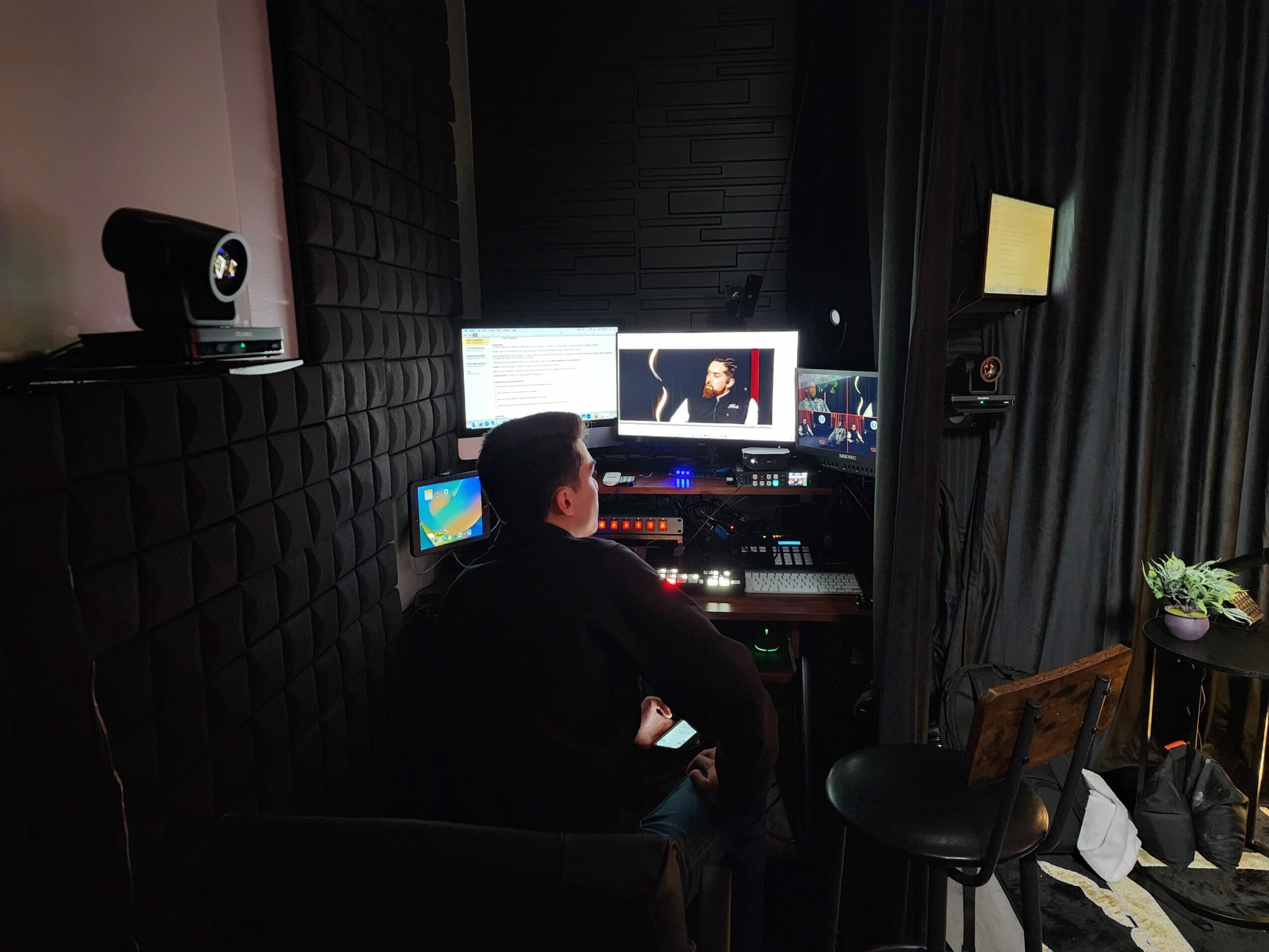For podcasts we try to be more than a studio with microphones, and cameras, we try to eliminate as much of the post production process as possible by creating a system where we can have a client show up at our studio, and right after their podcast session within the hour have a pre-cut and pro-mixed video ready and in their hands for posting instead of waiting 1 to 2 weeks for a final product. We also integrated the ability to interview individuals outside of the studio whereever they are around the world from the studio.