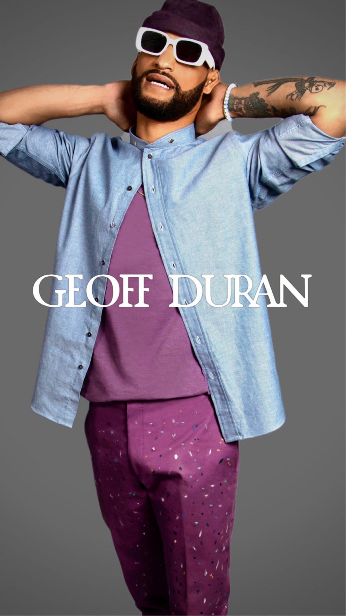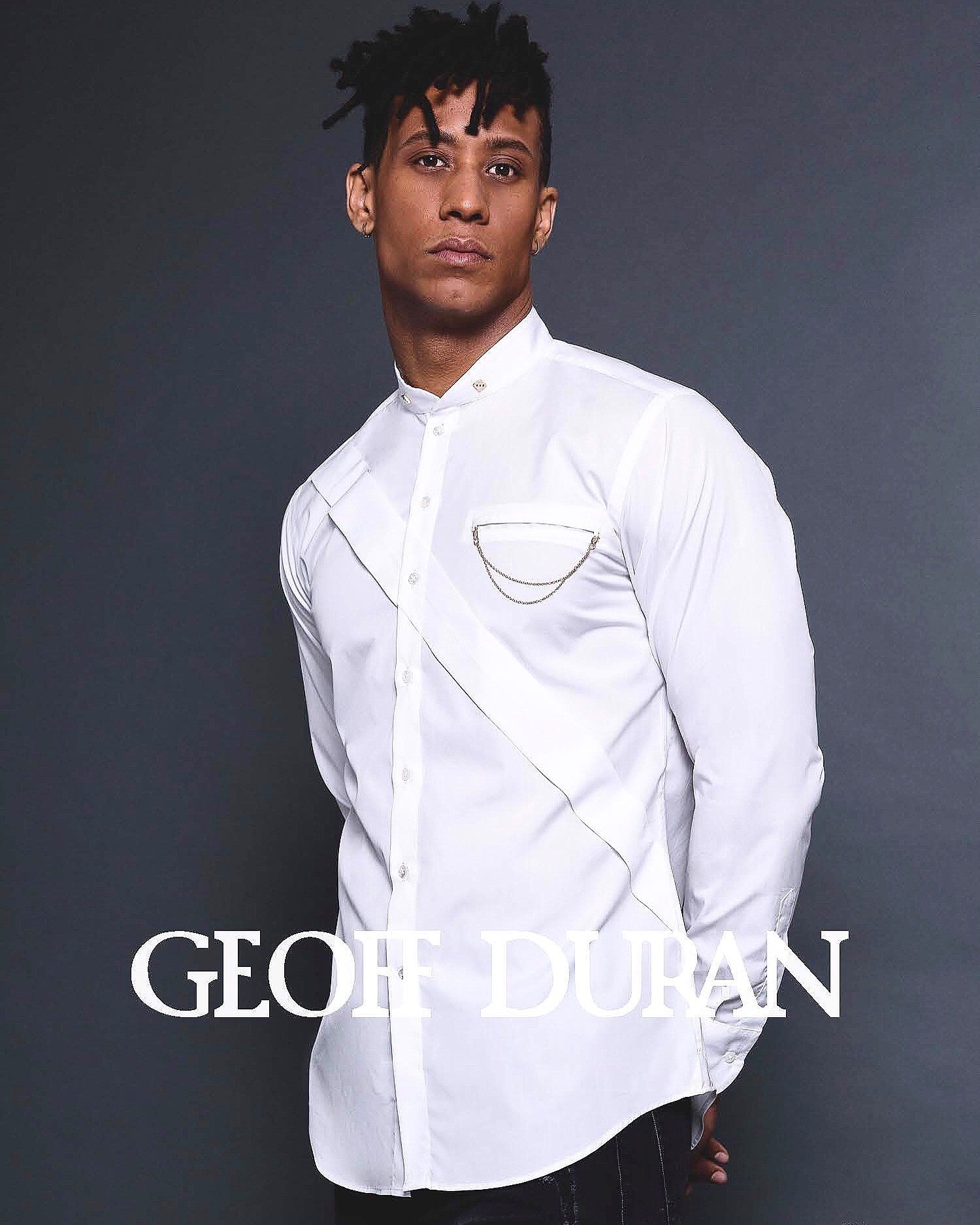 As a designer menswear brand, my mission is to refine cool and become a 21st Century pop-culture icon for hip American luxury. I’m in pursuit of refinement yet sartorial freedom from the traditional conservatism of dress codes. I believe men should have the freestyle to be tailored in their own right, only obligated to appropriateness. My informal-formal tieless tailoring is creative elegance that solves men’s cognitive dissonance between conventional proper attire and creative expression and relatively our overdressed-underdressed conundrum. My direction for GEOFF DURAN is unconventional appropriateness, guided by de-formalized refinement, distinguishing my mix of cool tailoring and street-inspired sportswear influenced by dandyism and hip-hop.