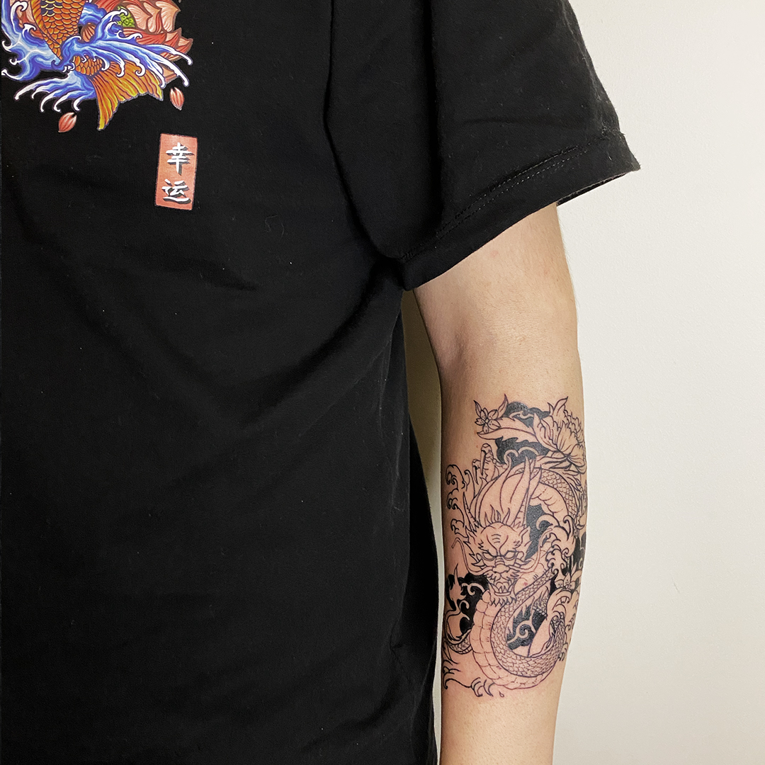 During the pandemic, when we were all stuck at home, a friend of mine asked me to tattoo him. I had designed tattoos for friends before, but I had never actually tattooed anyone. At first, it was just a joke. I told him I needed tools and a machine to practice. The next day, he showed up with a full set of equipment from an artist and said, “What’s your excuse now?” That’s how I started learning to tattoo—just for him.