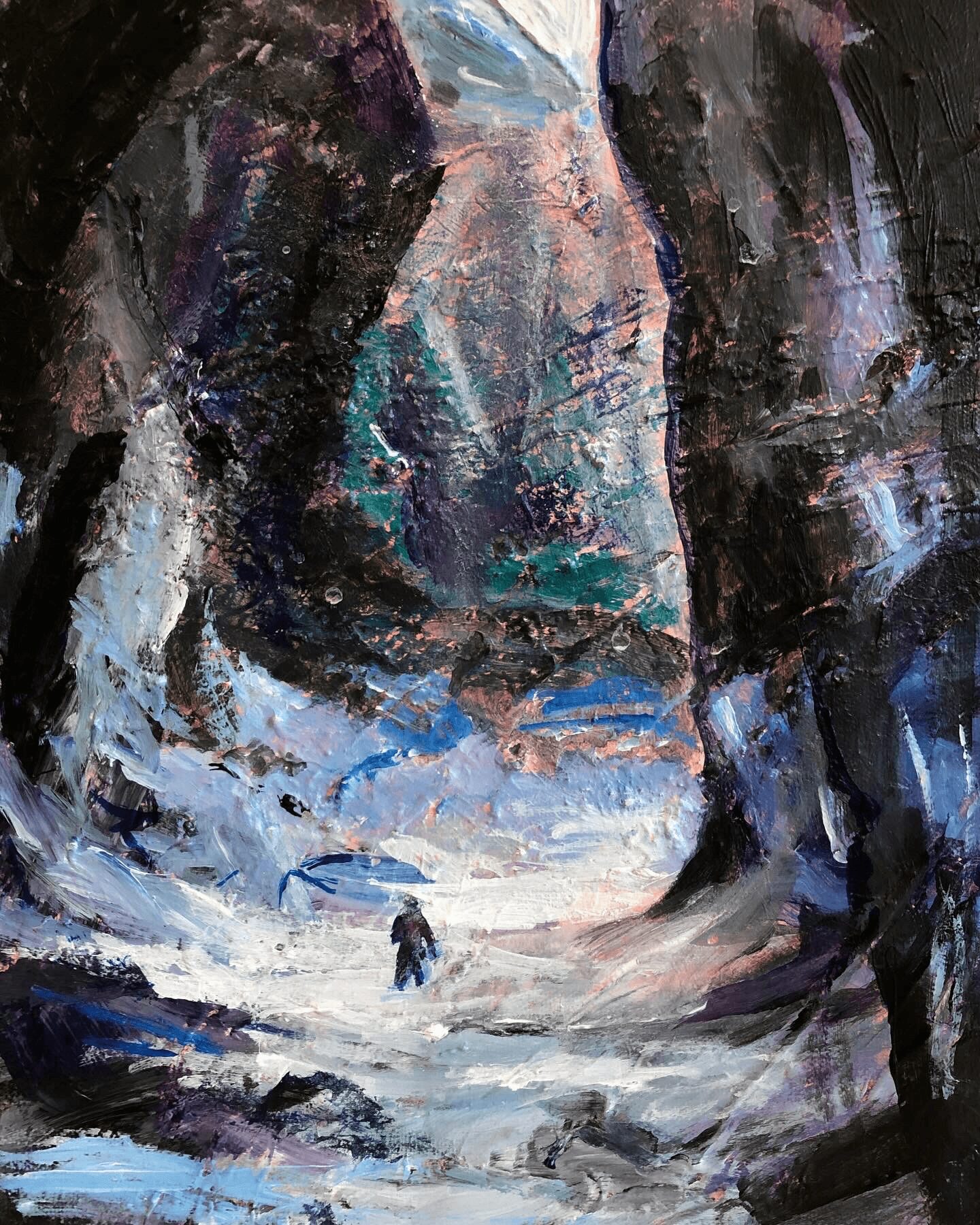 I’m from South Carolina originally. I grew up near the foothills of the Appalachian mountains. After I finished college I moved to LA to take classes in film scoring at UCLA. After writing music for a full-sized orchestra I was hooked on the thrill of composing. Many hardships and a few years later I’m still writing music (although I decided to quit several times in between). During one of those quitting spells that came about from unfortunate health issues, I started painting. Painting became a healing, meditative practice for me that helped me recover from the traumatic experiences I received working in the entertainment industry. During this time of painting I honed my skills and developed my unique style that you can now see in my work. I am now working as a full-time artist and composer.