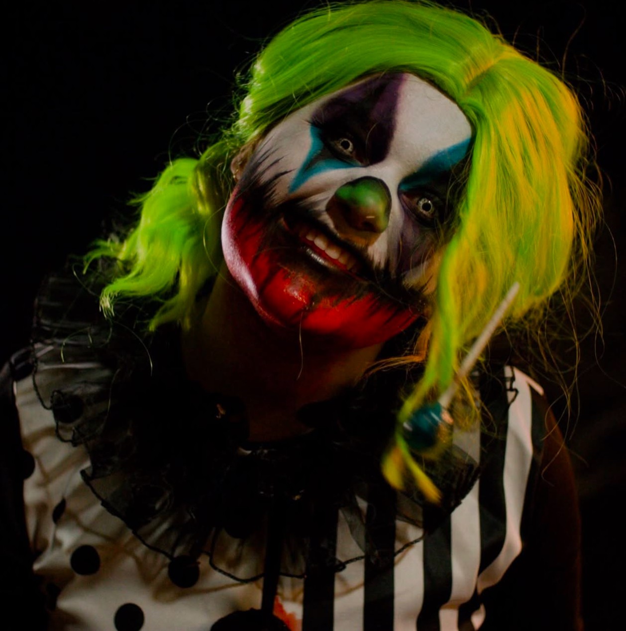 So far, I’ve played a clown in a horror film, wearing a bright green wig and unrecognizable makeup.