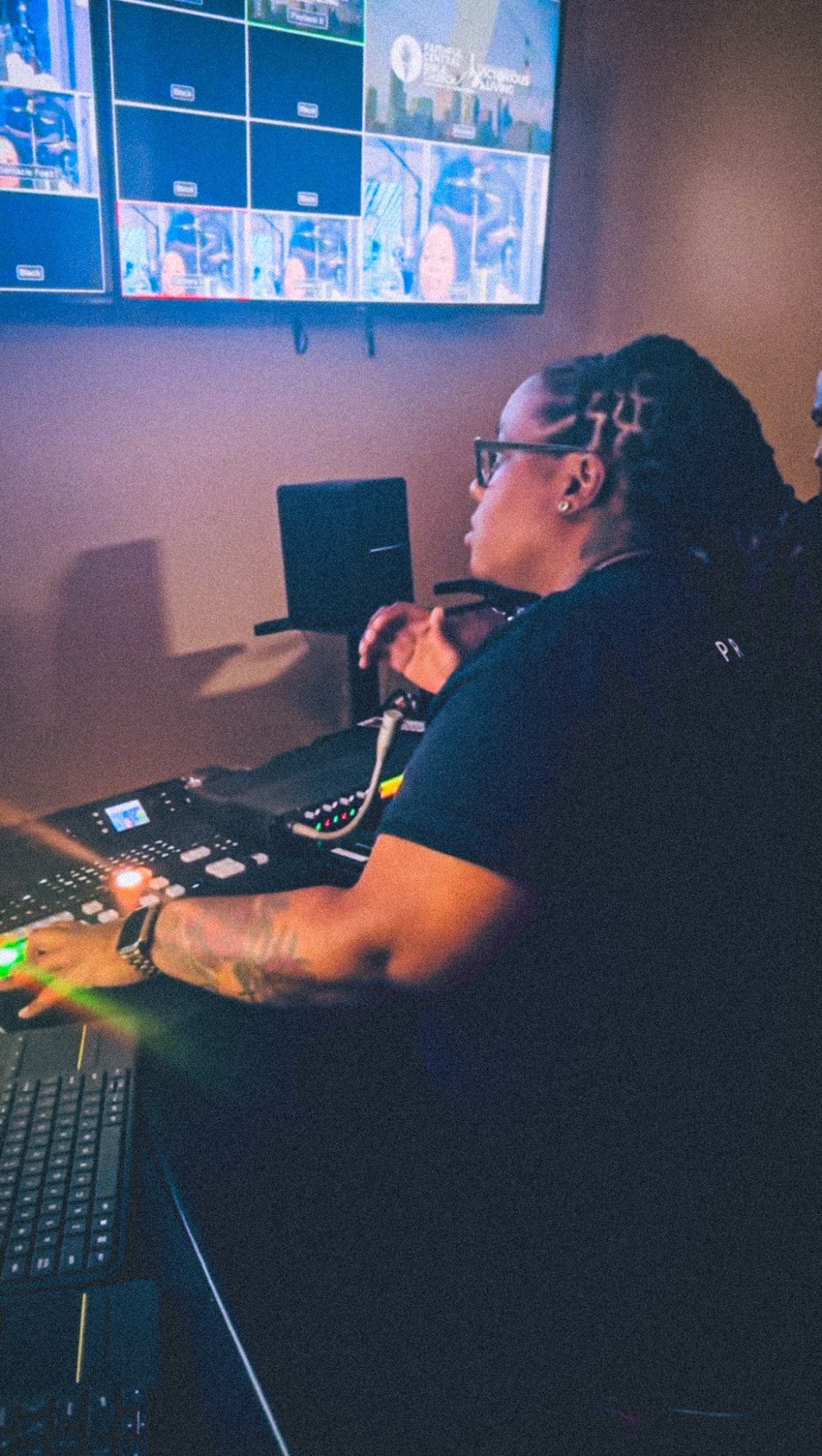 Now, while I was climbing that ladder, I was volunteering at my church, helping the production team. I was no longer playing the drums due to Covid, and I wanted to become a camera operator. I mean, I did have a degree in it. So, I was volunteering my time until I got approached to leave Chick-fil-A and work at the church full-time. I said YES.
