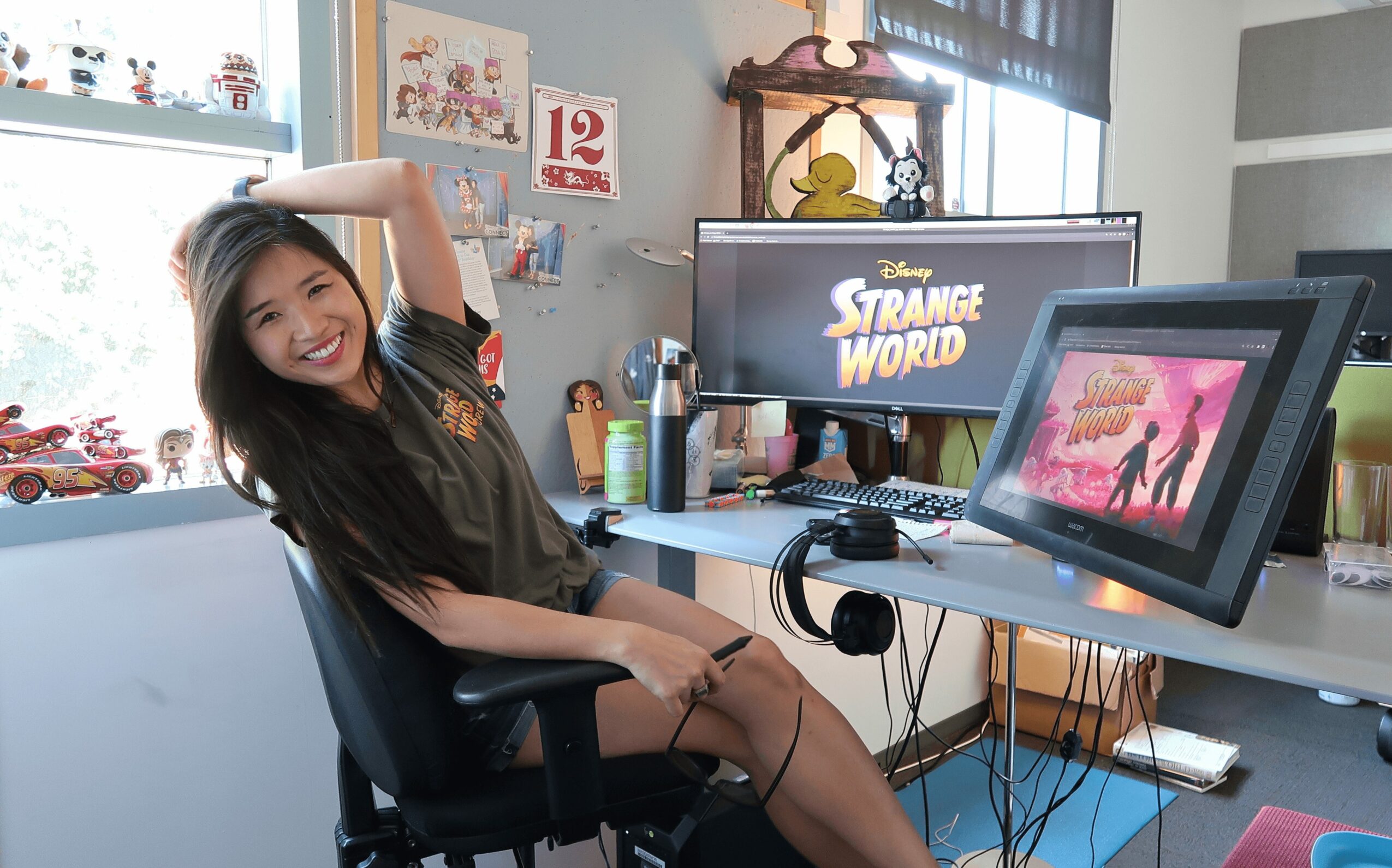 Working at Disney was a full-circle moment. I contributed to Encanto, Wish, and theme park attractions like Zootopia Hot Pursuit at Shanghai Disneyland. One of the most significant moments of my career happened at Disney—hitting my one-year mark and getting to sign the “A.” It’s a rite of passage for Disney animators, a tradition where we sign a giant letter “A” from the original Animation building signage. It’s a moment that signifies becoming part of Disney animation history, a tangible mark that says, you were here, you were part of this legacy. I’ll never forget the feeling of signing my name alongside so many artists I admired—truly a moment where I felt like I had “made it.”