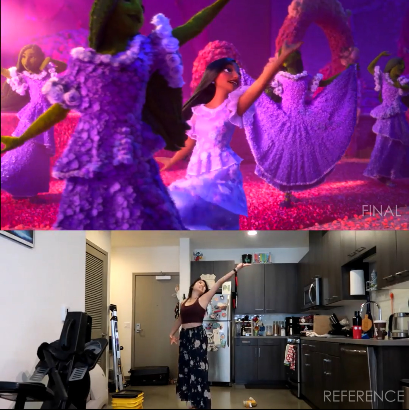 One of my favorite projects I’ve worked on to date is Encanto. It was an incredibly special film for many reasons—not only because of its vibrant storytelling and heartfelt music but also because it was completed during the height of the pandemic. Despite the challenges, it was an unforgettable experience. I especially loved animating parts of Isabela’s song, What Else Can I Do?. Those shots remain some of my all-time favorites, from Isabela and Mirabel surfing up a vine to their playful, dynamic movements. The process of filming my own reference, acting out their performances, and translating that into animation was so rewarding—watching those moments come to life in the finished film felt truly magical.