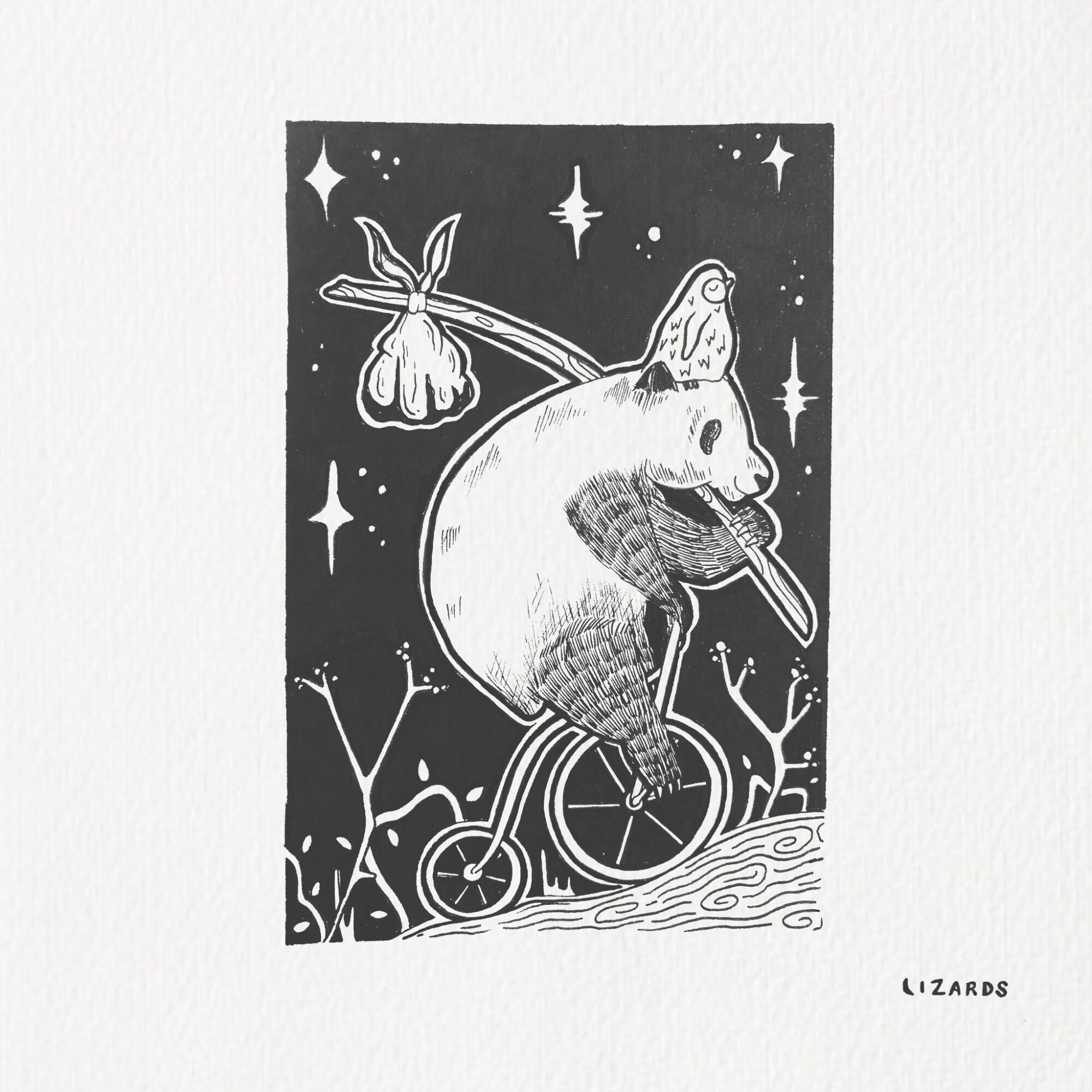 I aim to make art that is not only visually pleasing but also mentally pleasing. I try to, at least. I want to make people feel the art and maybe even question things a bit. I’m always reading or writing, and sometimes a single line sticks with me, searing itself into my mind until it turns into an image. I write these lines on the back of my pieces because they’re the spark behind the art – the raw, unpolished beginnings of what ends up on the canvas.