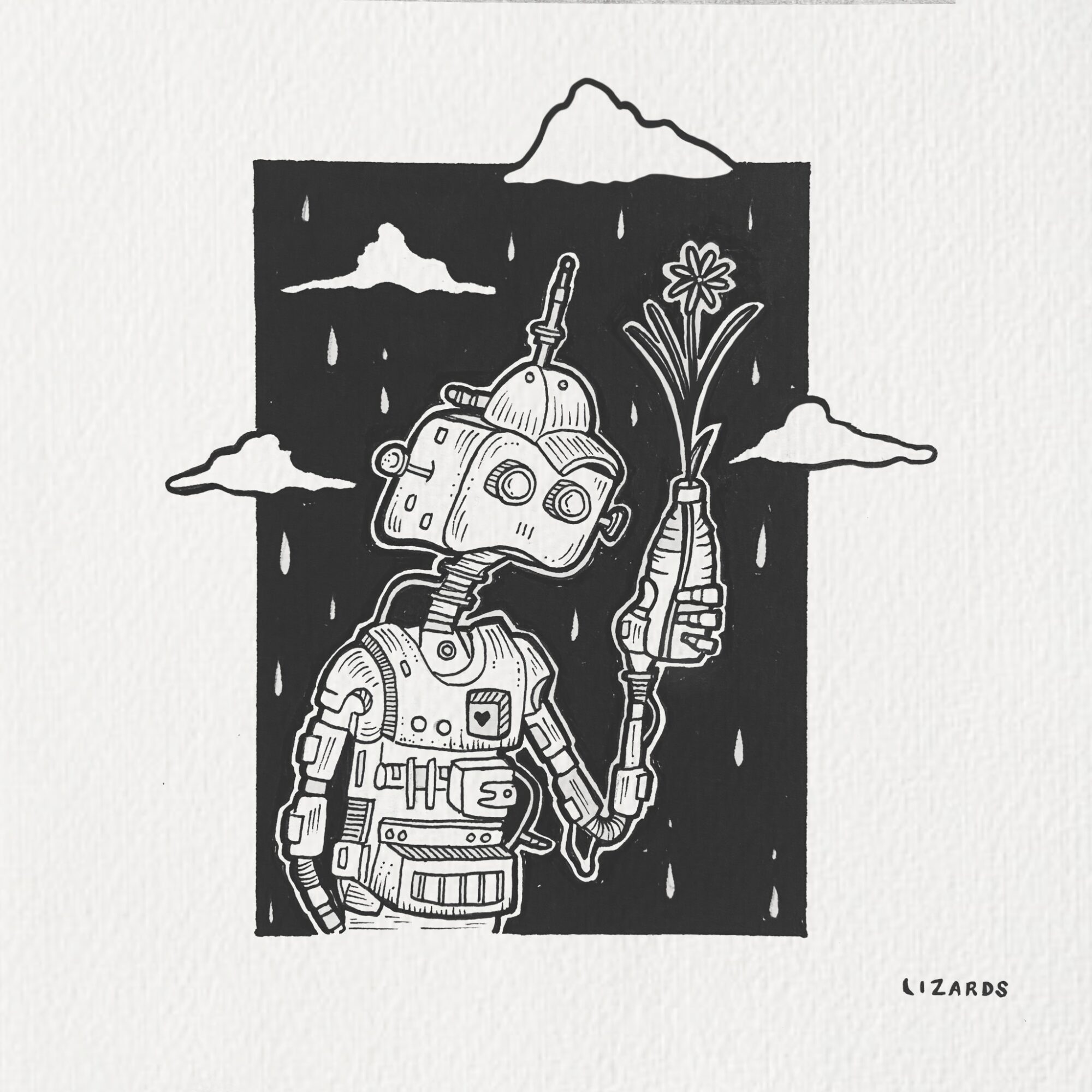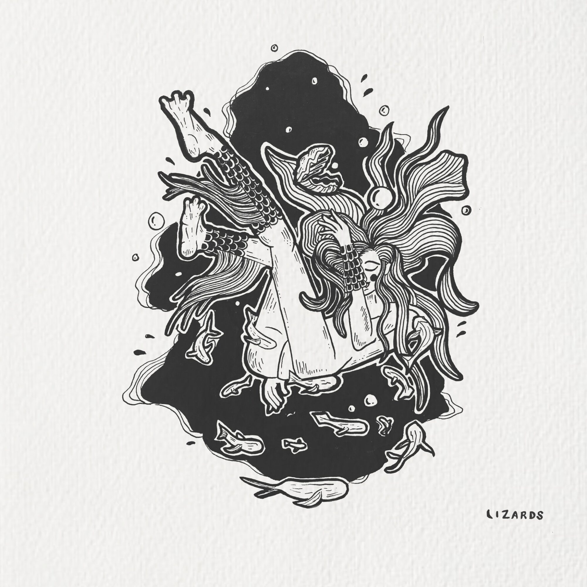 My work is a mix of whimsy and thought, and I create from a place that feels a bit like breathing. I can’t commit to one medium. I’ll jump from acrylic on canvas to ink on paper, watercolor, charcoal, or even large-scale murals, depending on what feels right in the moment.
