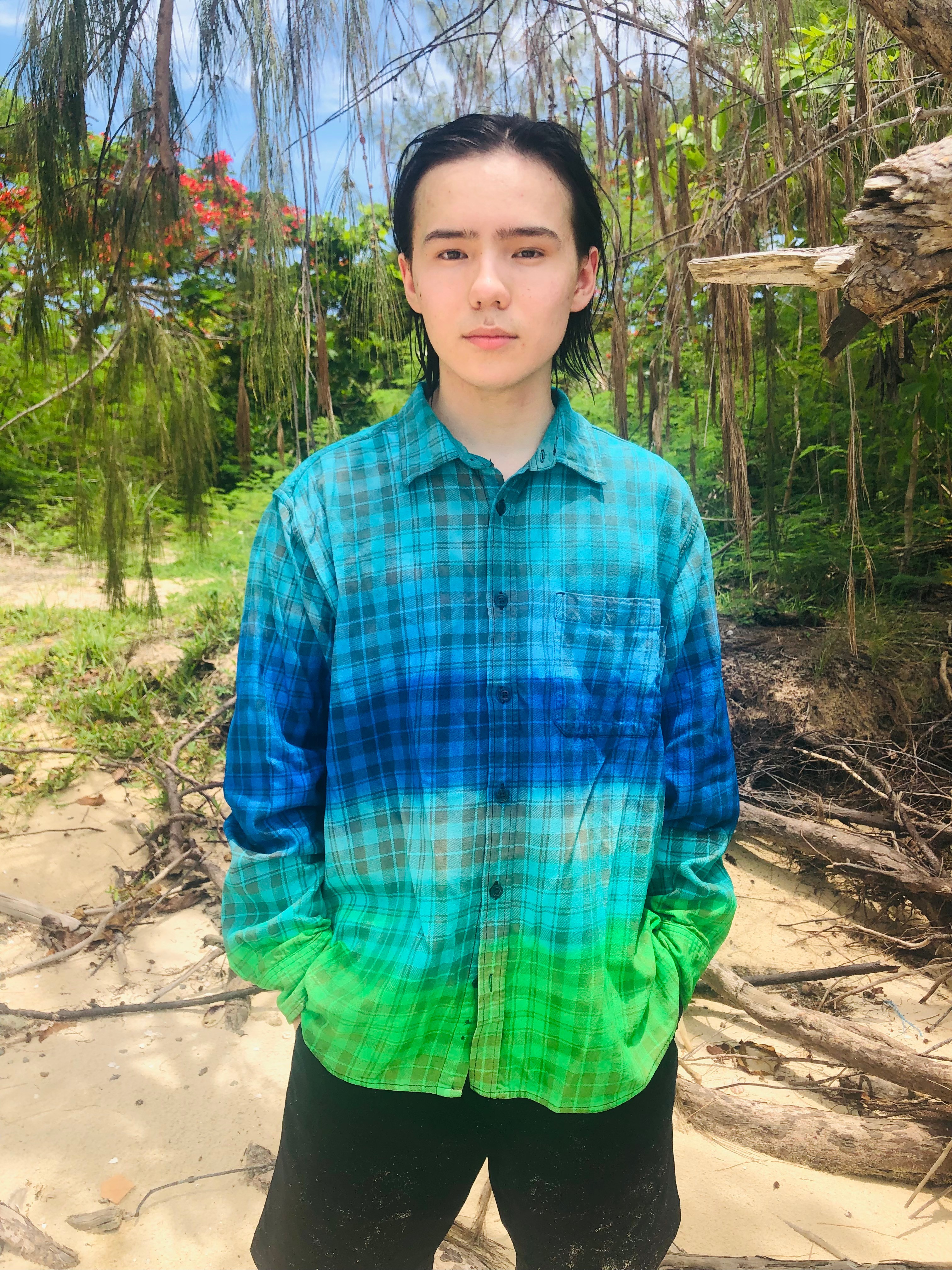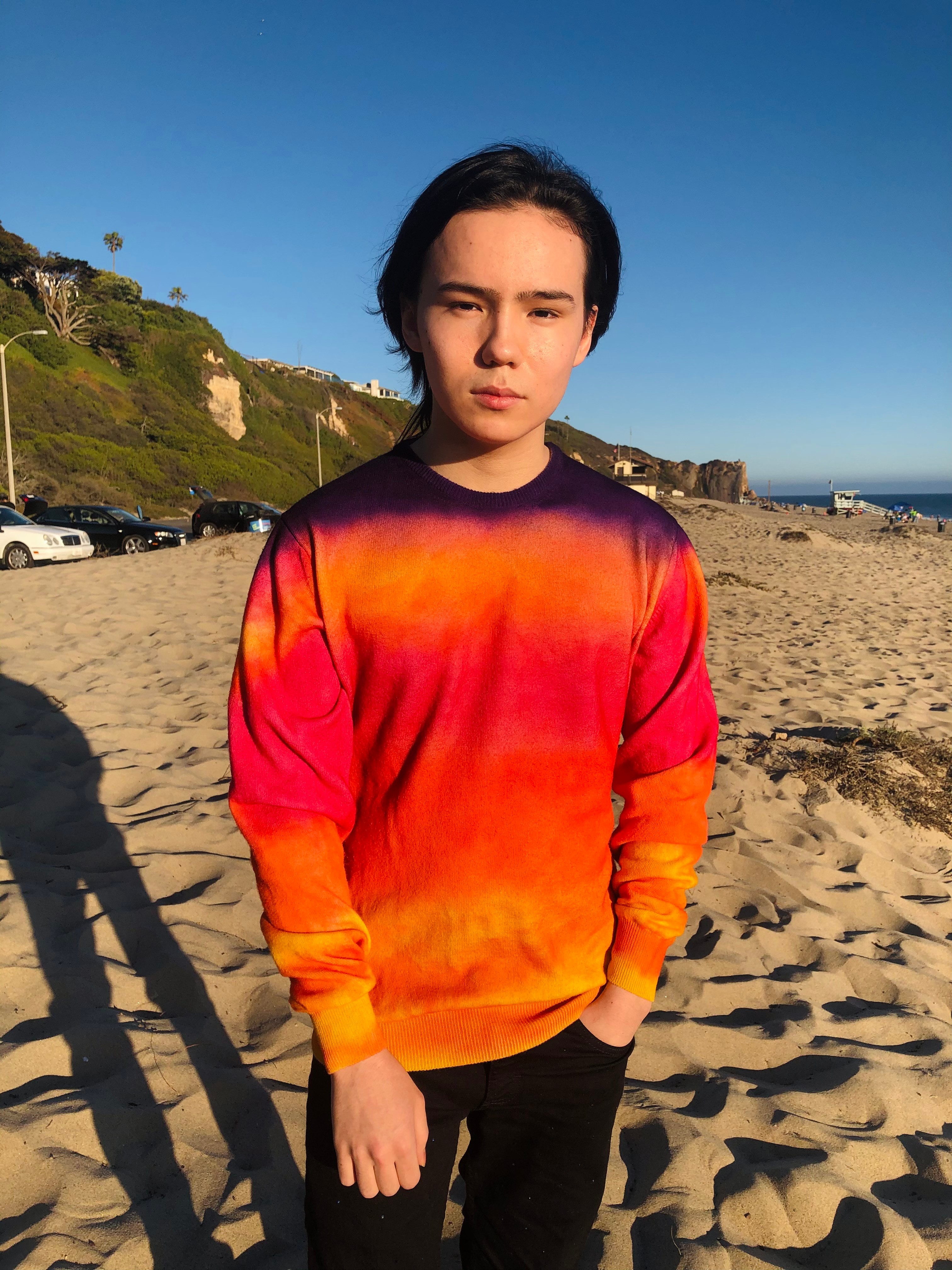 Since I was a very young child, I have been interested in art. In middle school, I was very quiet. But I began to have a great interest in fashion. We moved to West Hollywood, and I decided to better express myself through my clothing. This gave me a lot of respect and identity at Hollywood High School. From this, I understood the power of fashion. I attended Parsons in Paris during one summer and took sewing classes at Mood Fabrics and fashion sketching at LA Trade Tech College. In college, my major is Art History, and art informs all of my designs. During my senior year of high school, I began developing my brand S-H-E-N, and currently sell exclusively through our website, s-h-e-n.com.