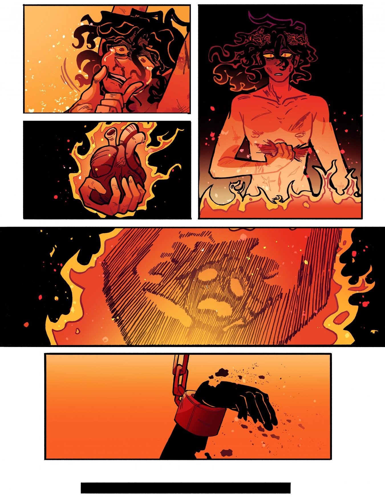 I create comics for people who haven’t had it easy; I specialize in comics that take a hard look at the psychological aftereffects of child abuse. My current work, “Frankenstein: Hearth Found,” confronts the difficulties someone who has never received love in their formative years has when they venture out in the world and try to find love. As someone experiencing the same dilemma, I feel obligated to create something that might help others who might be struggling also. I was told in college that the style of my artwork doesn’t immediately lend itself to the narratives I write, and I take that as a compliment. Who doesn’t love a good juxtaposition between word and image? Other than that, I think I’m known for the bold color palettes in my work. I’ve noticed that a lot of comics in the major players have only recently been dipping their toes back into more vibrant colors for their comics, but when I was growing up, everyone was obsessed with making everything look super realistic (resulting in very dull pages, in my opinion). Stylization over realism any day.