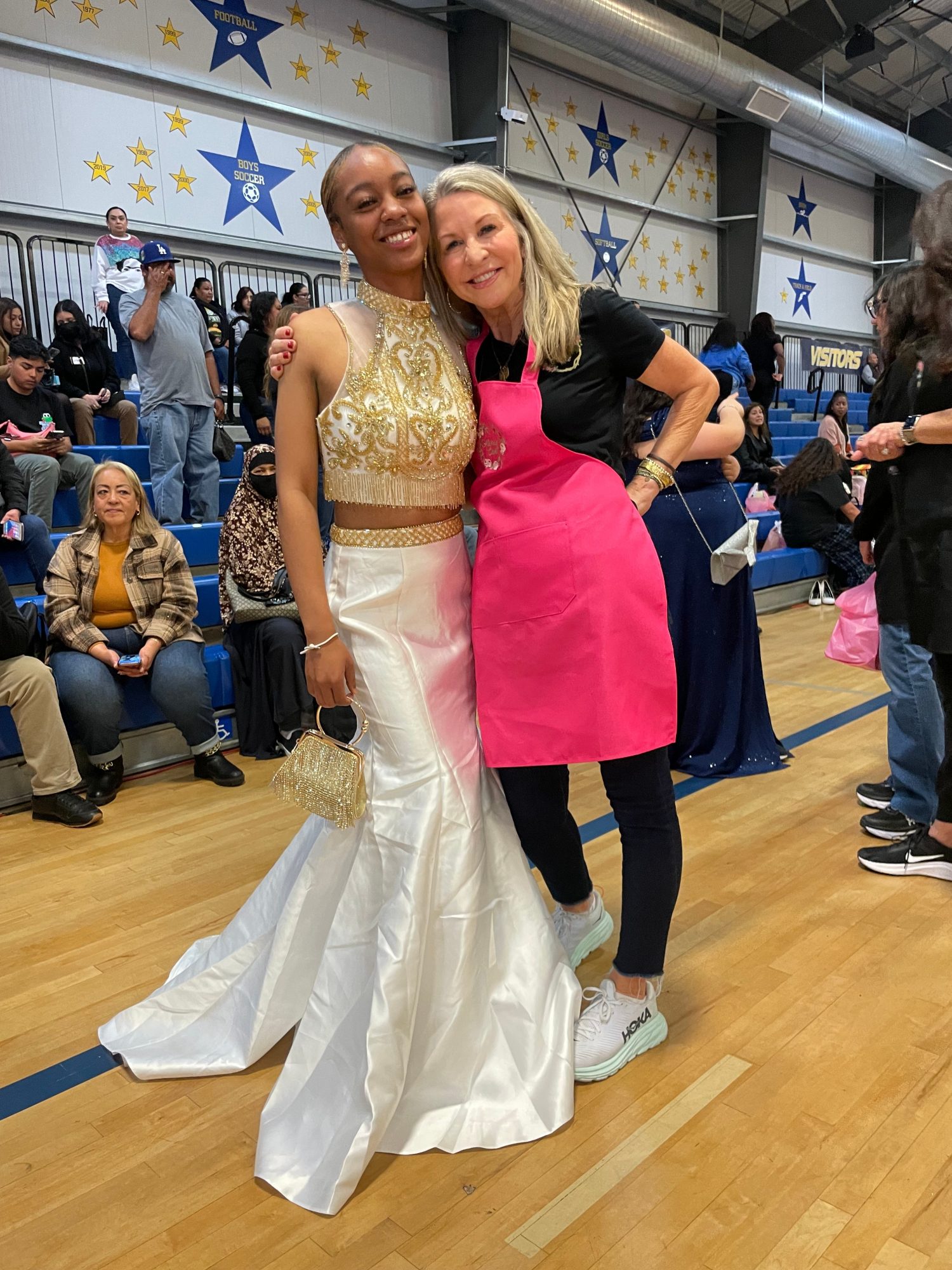 Fast forward to today. Our annual Big Give event brings together high school senior girls from all of Southern California, encompassing over 51 Title I schools! City councilmen send buses to South Central, East LA, Watts, and the Valley to provide transportation to those who simply do not have such a luxury as a car or parents/guardians. As the girls pour in from near and far, you can feel the excitement in the air! The Mary Star High School gym space has been converted into a best-described prom dress wonderland! Over 175 amazing volunteers from our community work to create a fun, carefree, and empowering space for a magical day of shopping and confidence-boosting ALL for them! 1000’s brand-new gowns with tags are rolled in, over 55 dressing rooms are ready, balloon arches, dazzling new accessories adorn tables, and luxurious makeup swag bags… all for them, all free of charge, all donated by our amazing community. Each young lady is teamed up with a volunteer personal stylist who spends “TIME” with them to find the perfect gown. Our Maria’s Closet girls leave our event with a brand new designer gown, all accessories, make-up swag bags, two excellent motivational speakers delivering positivity and tools, but most importantly, a network of new and lasting friendships and something to look forward to, to rock that prom night without the financial constraints that they have lived with for most of their lives.