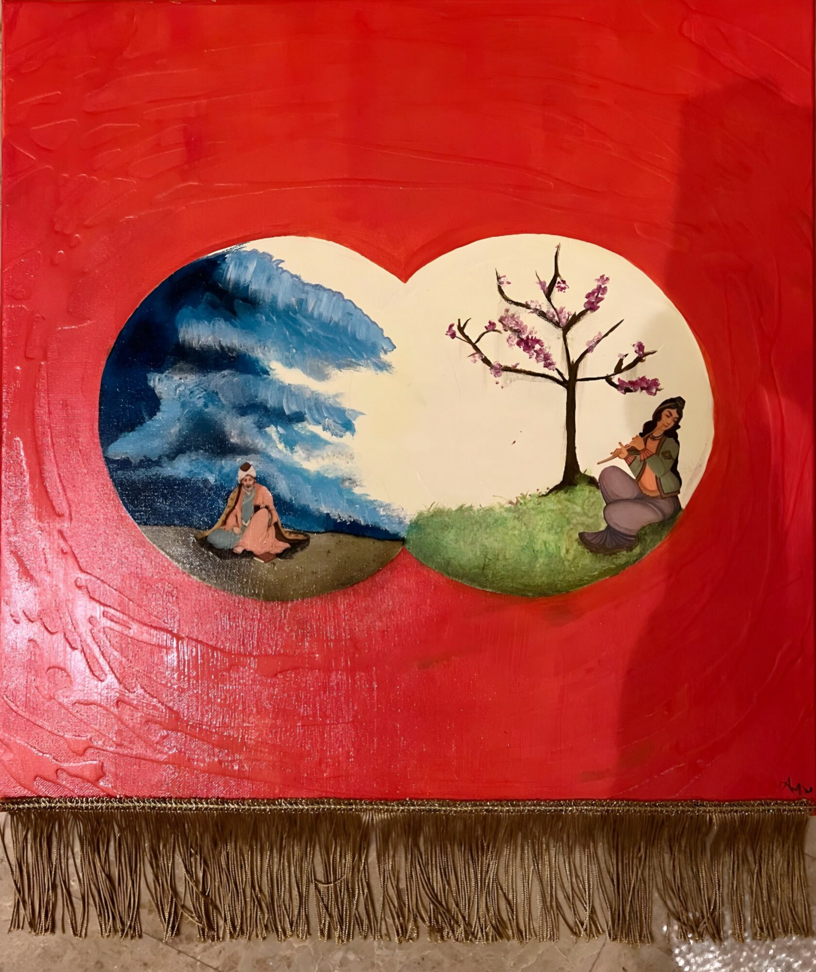 I touched on this earlier, but to put it simply—I do a little bit of everything when it comes to art. I enjoy using a variety of mediums—like acrylics, oils, pastels, charcoal. But I also work on installations where I start with my digital art, print it either on canvas or as a poster. I’ll then turn the print into a multimedia piece with either painting to add more depth and texture, Or with adding Persian calligraphy. I think that’s what makes my work “mine”; is the Persian flair or abstract elements that my work brings forward.