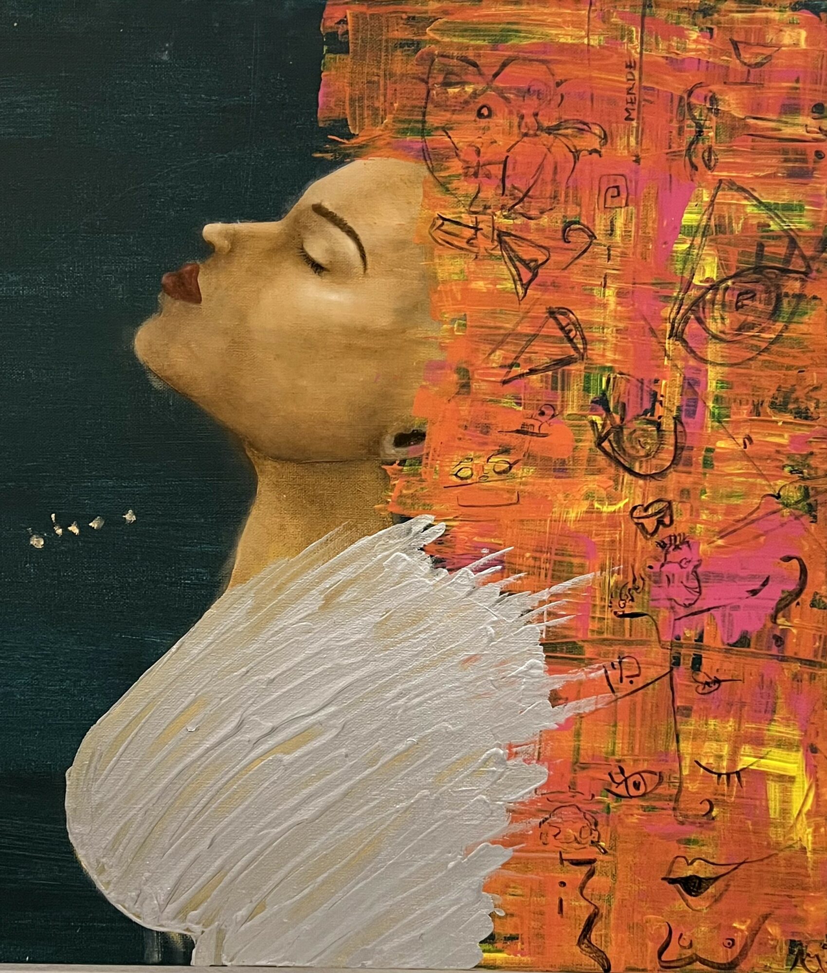 Over the last few years, poetry has become a big part of my work. A lot of the time, my poems come to me in Farsi, and then I translate them into English. Which adds a whole new beautiful layer to my creative process. My poetry has been at the heart of most of my art for the past seven years. I published my first poetry book, Letters from the Fire, in 2021—it’s a collection of my most personal and reflective work. Now I’m working on my second book, which is going to be a beautiful mix of Persian culture, modern society, my own notes, some new poetry, and, of course, more art. I’m beyond excited for this one—stay tuned!