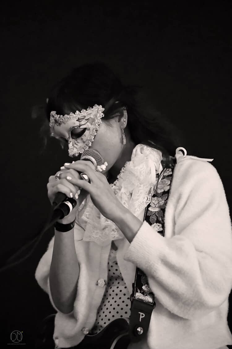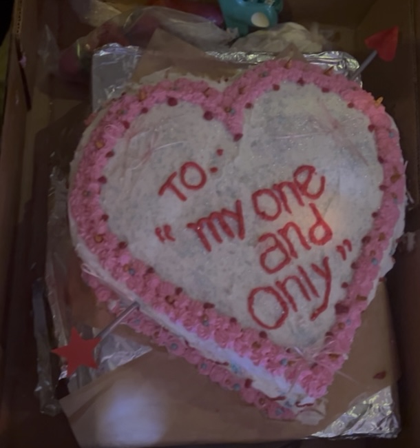 At my new single release party for “My One and Only”, it was a masquerade party so everyone dressed up and wore masks and I had designed a heart shaped pink cake with arrow going through it. I am a terrible baker/cook so my dear friend who helps me with my merch branding and my costumes, made the delicious cake <3