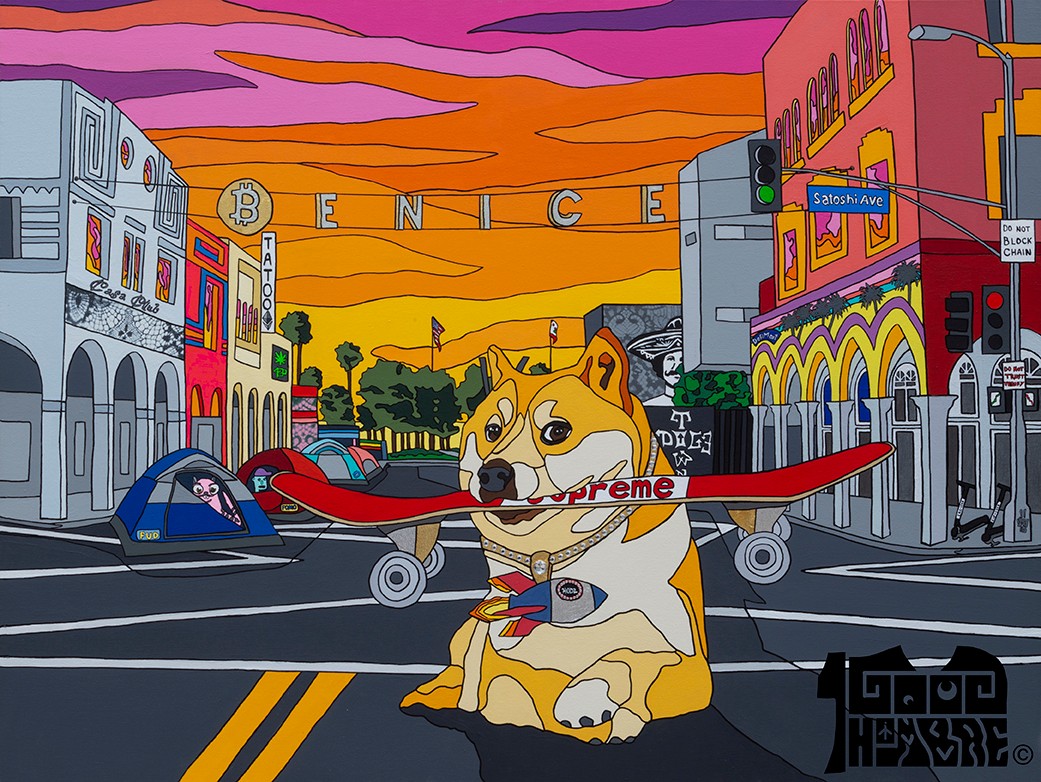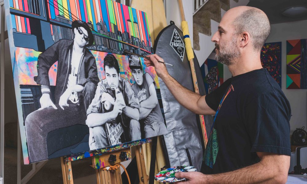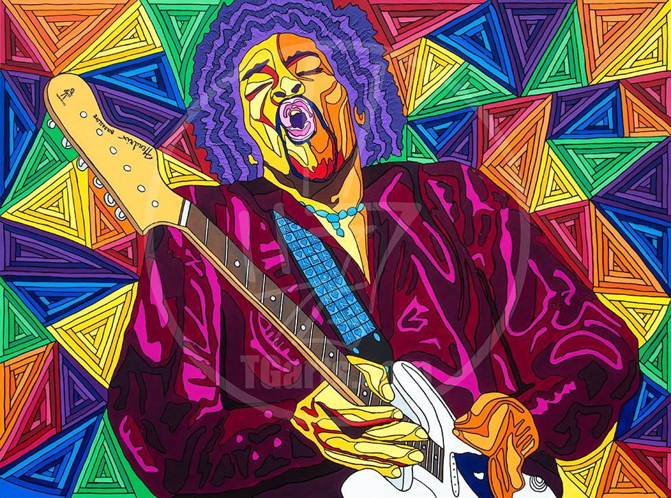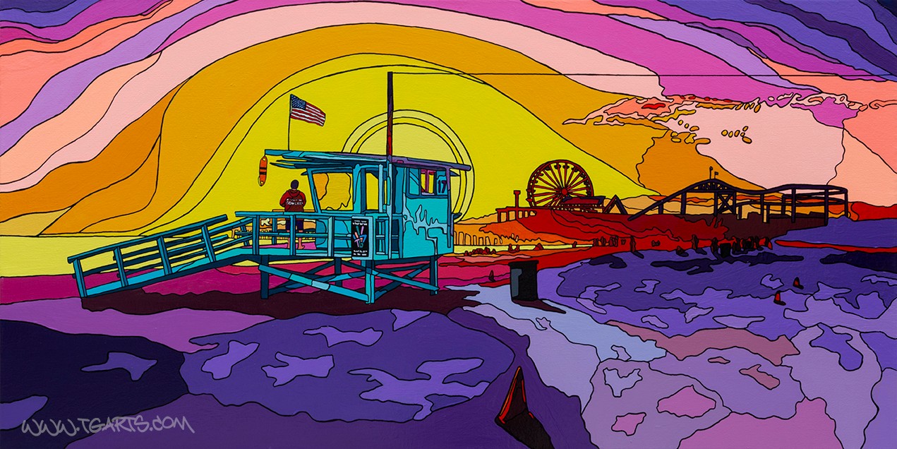 Thanks to the Venice Boardwalk, I survived the Great Recession and was able scrape enough pennies together every month to stay in Los Angeles. It was that year during which I found and embraced my artistic soul. By 2012, drawing inspiration from an eclectic life of music, sports and travel, tossed up into a healthy salad of global politics and religion, I was able to develop my own unique style. It’s a colorful painting style that’s funky but clean, straight but twisted. It’s my life in vibrant colors, spaces, and forms, which I’ve defined as Psychedelic Realism.