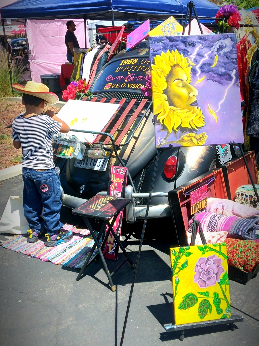 I am most proud of coming up with an innovative way of exhibiting my artwork by converting my 1966 Volkswagen Beetle into a mobile boutique and gallery. In addition, I’ve kept the community in mind and have made a space on the vehicle for passerbyers to express themselves creatively via a community canvas. I usually get the reaction of: