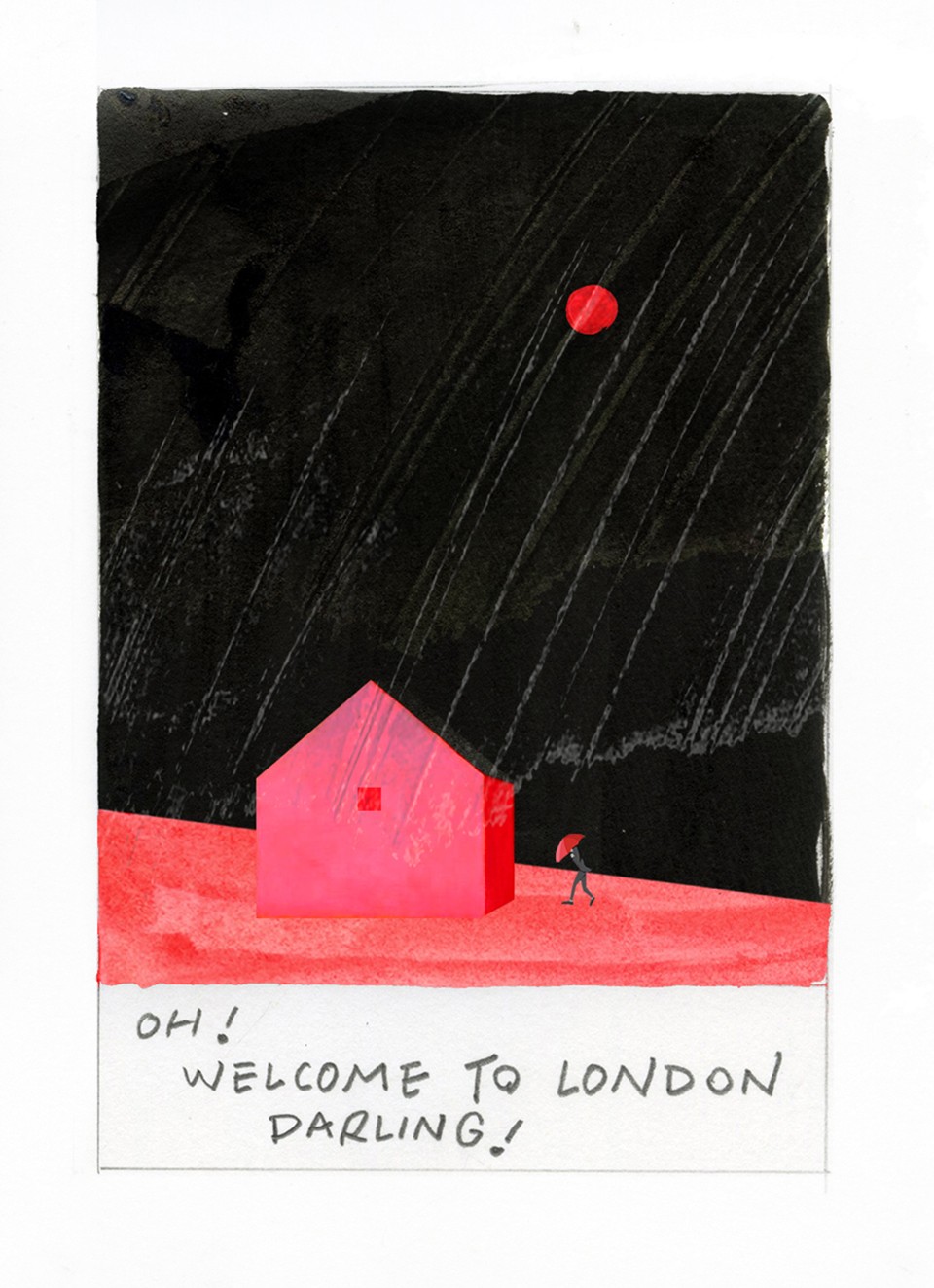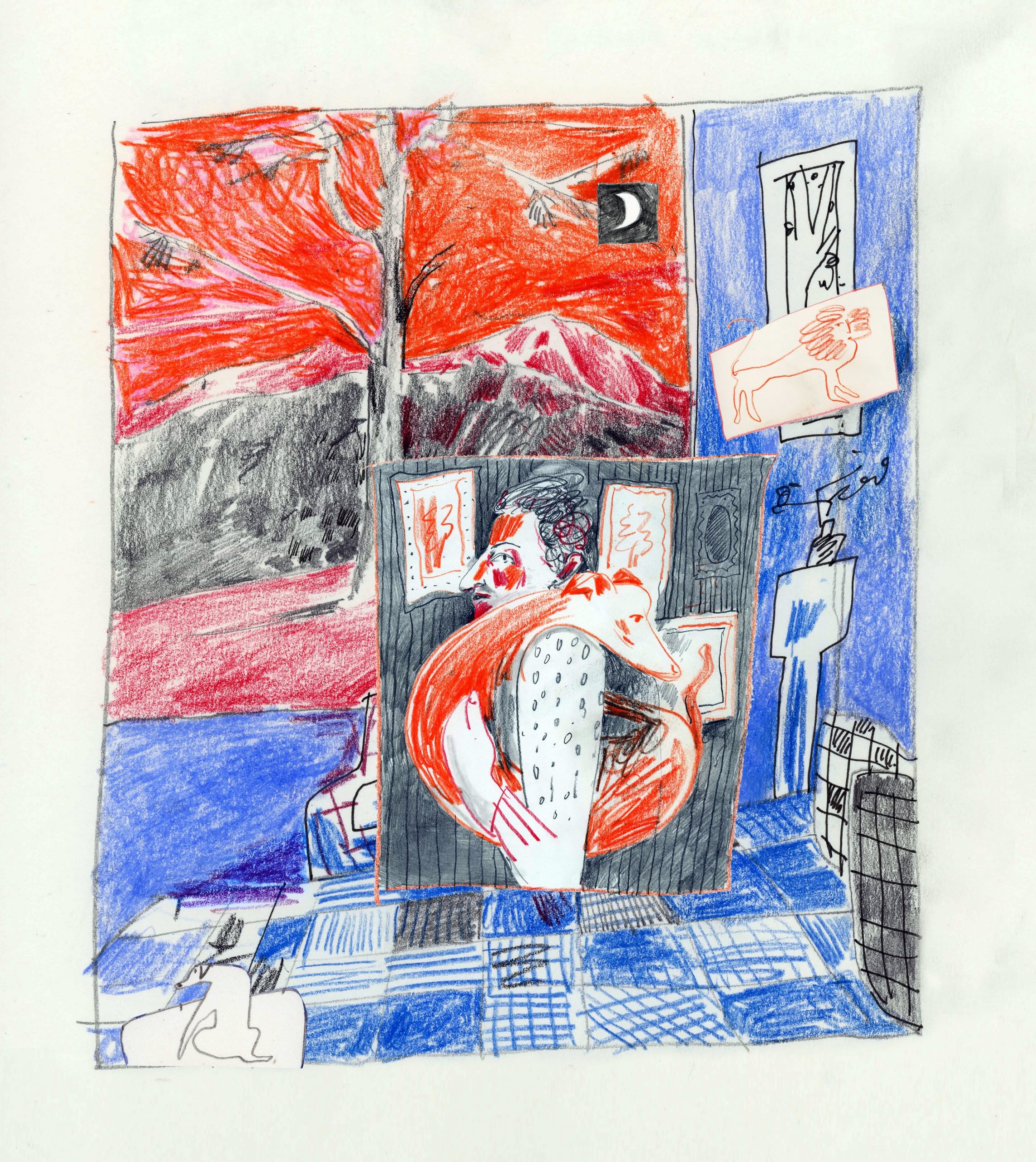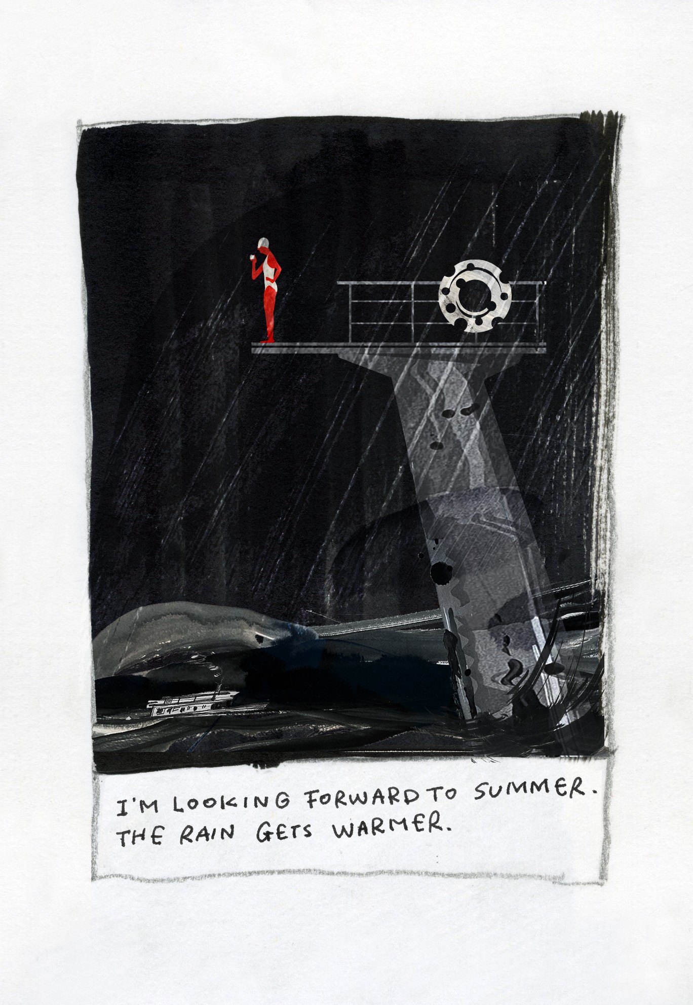 Drawing is a way to communicate, allowing my emotions to flow and take shape on paper. It serves as the foundation of my work and provides a continuous means of introspection and world-viewing. I am desperately trying to turn everyday moments into illustrations in just a few colours with simple marks and shapes. If I’m lucky, they’re the right strokes in the right places, but in a lot of cases, I’ve completely screwed up a drawing. This chaos translates itself into images that are full of energy and movement. Offering a little humor in its imperfections and beauty while also responding to family, fear, anxiety, confusion, uncertainty, and hopeful moments.