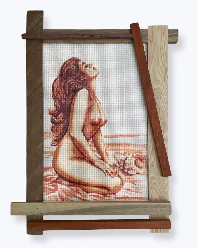 I am a multidisciplinary mixed-media artist driven by curiosity, craft, and reverence for art history. My work lives at an intersection of fashion, surface design, and fine art, where past and present meet through handmade process and intentionality. I prefer to build with upcycled materials, allowing each piece to carry both memory and new meaning. I taught myself to sew at a young age and always kept as creative as possible throughout my schooling; taking photography classes and whatever I could get my hands on. Both of my parents are self-owned entrepreneurial spirits like myself. My mother has a handmade greeting card company called Lumia Designs that I also help with. My father is a recently retired woodworker, Chris Karlson. He and I collaborated a few years ago, I was very interested in making ‘patchwork’ art frames out of reclaimed and scrap wood from around his workshop. I studied textile design as well for a few years. Today I still have an endless drive to explore all mediums. I sew and paint as much as I can but I have dreams of venturing into more hyper-specific things like: designing sunglasses, music and voice acting, more directive type work, and maybe even baked goods.
