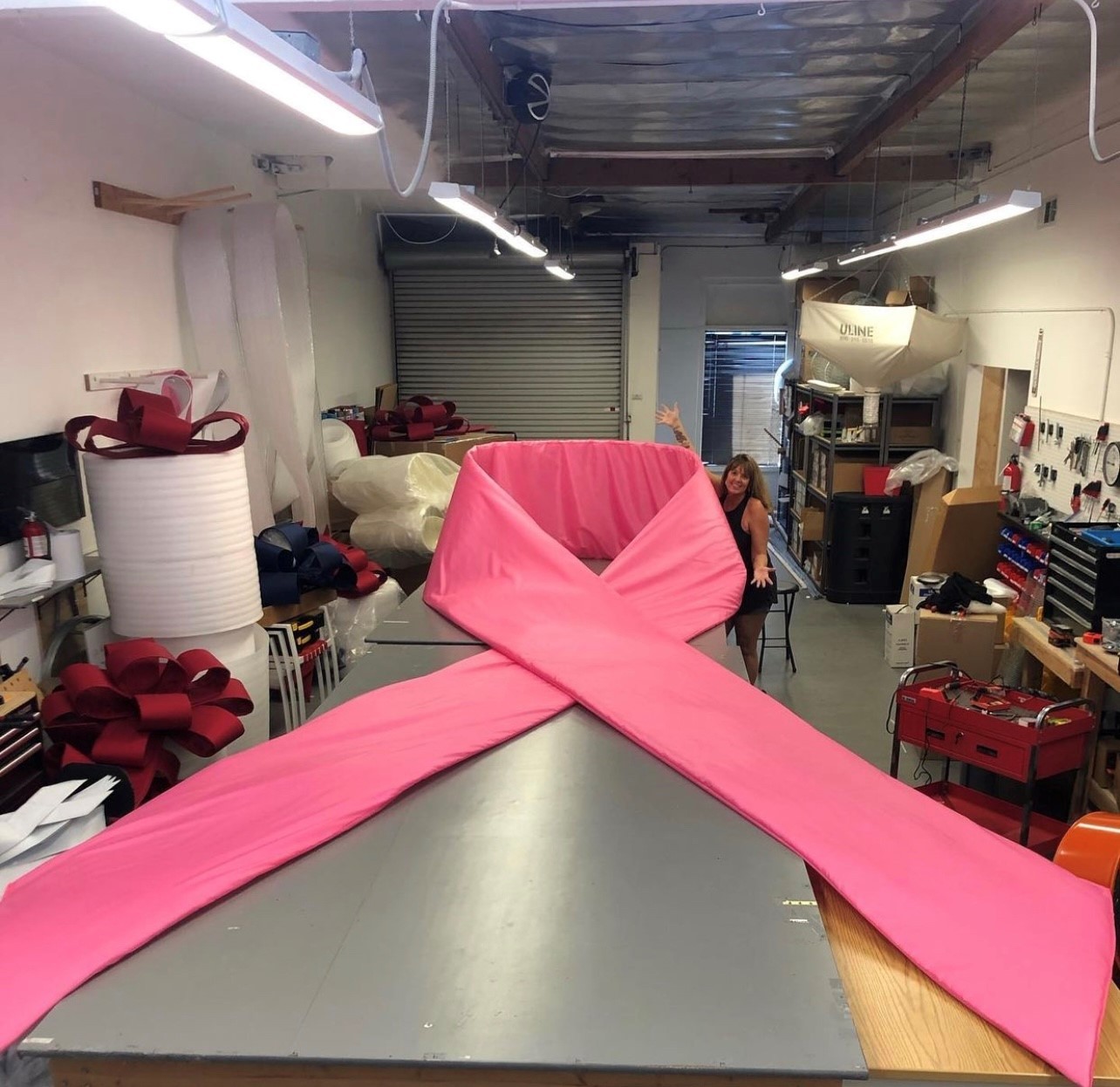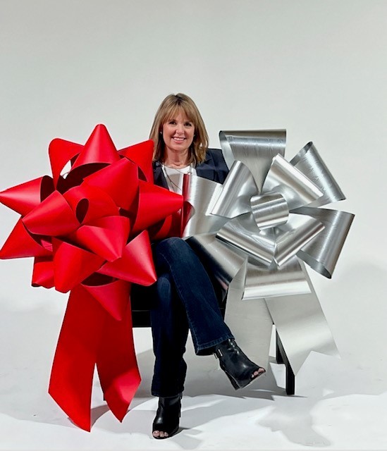 We make BIG… King Size Bows! We are known for the bows you see on car commercials, TV, and game shows (the box that Channing Tatum jumped out of on the Ellen DeGeneres Show for her 60th birthday with the big bow on top), buildings, houses, and grand openings. We specialize in custom bows to make a special occasion memorable. I am most proud of our growth and being able to continue to offer our clients hand-crafted, USA-made products locally. Our quality and attention to detail sets us apart from the rest. Our clients have told us our custom bows are second to none.