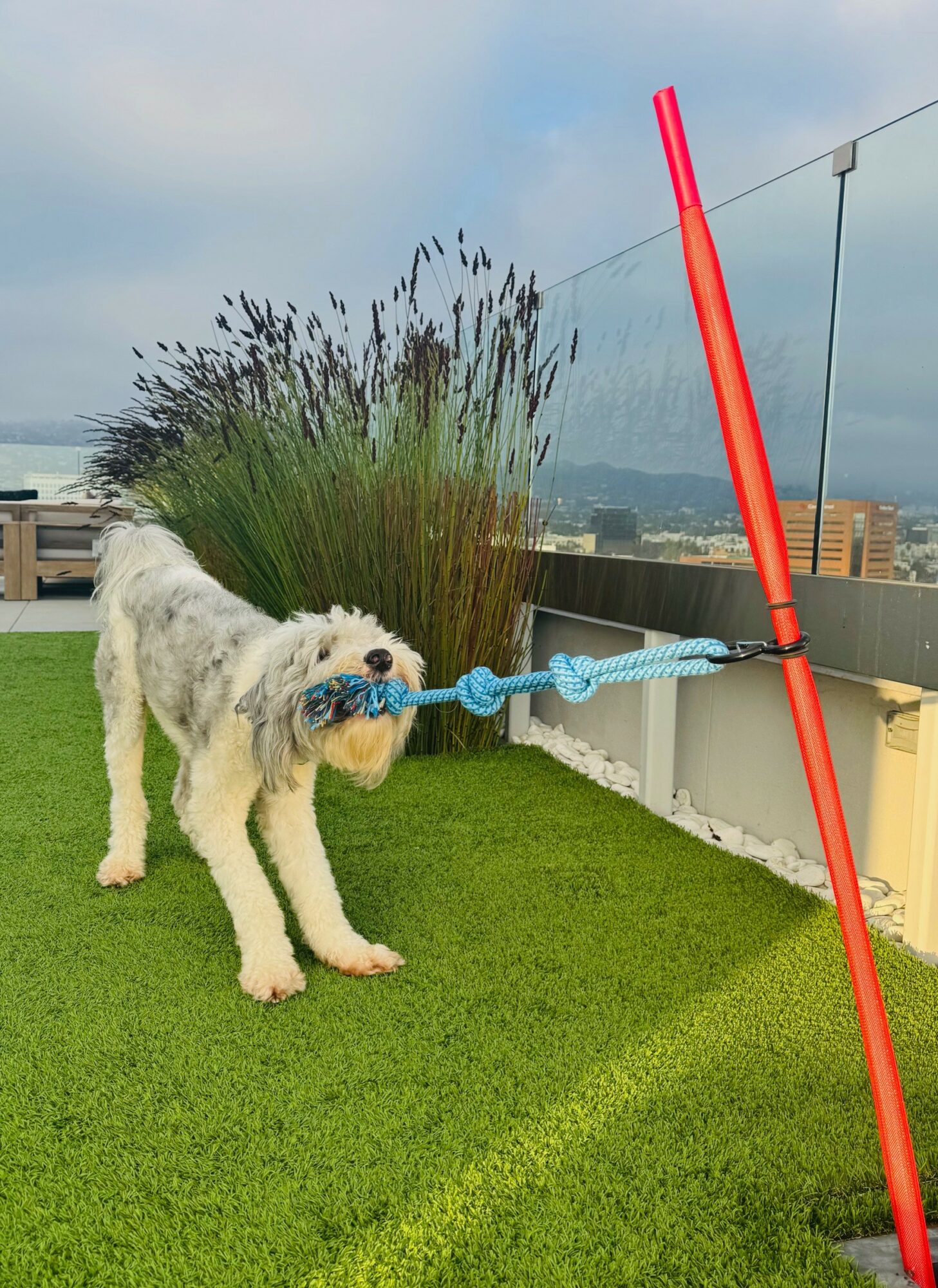 I got a Sheepadoodle Dog three years ago who is crazy high energy, so I am always looking for new ways to entertain him. I started by noticing that dog balls are all the same color and wanted to elevate them by wrapping them in pretty fabrics with polka dots. This evolved into developing a tug toy for the backyard or indoors for dogs to tug on a rope or a ball. The dog can go all the way around the pole, so the dog can get an actual workout running around the pole. The process was complicated because as simple as it looks, there are a lot of components that are part of the pole to make sure it functions properly. I have been in executive search my whole career placing lawyers and really wanted to create a product and brand, my other business is a service business. I started a chocolate company 15 years ago, that was crazy successful but difficult to mass produce, it was fun marketing it and having a physical product that i created from my heart. So that was also my inspiration. I have always had the desire to create a product even when i was a child, I would always notice different things in the store and question how the got started and was intrigued.