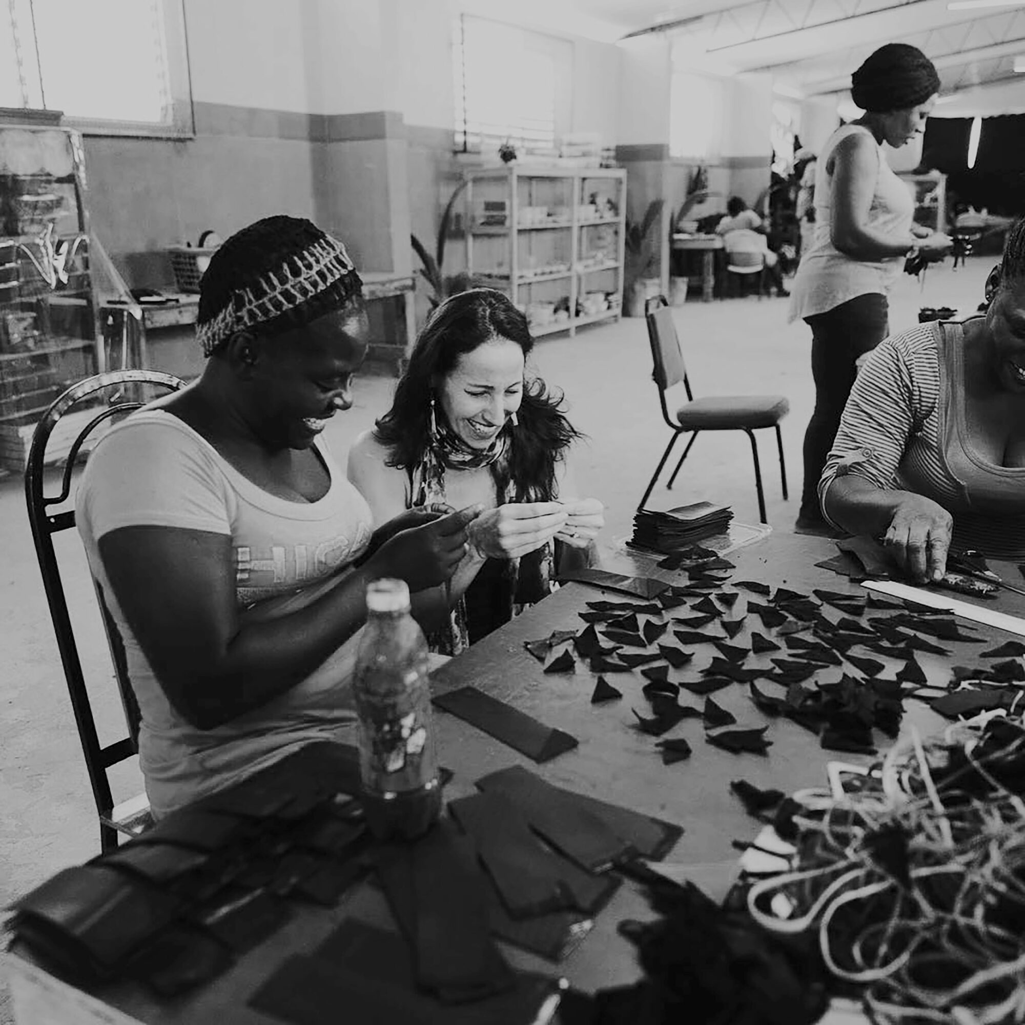I had no background in manufacturing or fashion design, but I saw there was an incredible talent that could be tapped into on the island. So I listened, I learned, and I stayed. Alongside incredibly talented Haitian artisans, we started manufacturing sandals out of repurposed tires. It was humble, scrappy, and full of heart. For years we sold our sandals to relief workers, United Nations staffers and anyone that visited our little enterprise. That small project eventually grew into Deux Mains, a fair-trade leather goods company built to create long-term jobs in Haiti.