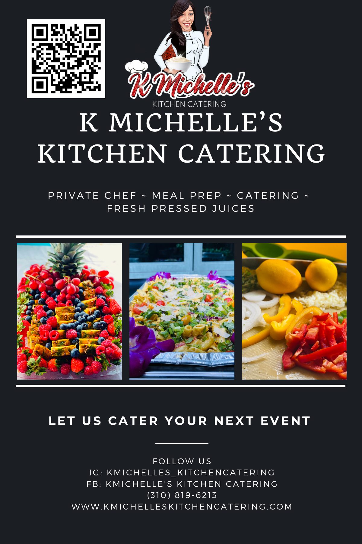 I am a Los Angeles native. I am a mother of two wonderful children, ages 21 & 16. Both of them are part of my catering business… My business was started with my family in mind. I call myself a serial entrepreneur. I started my first business in 2011 as a hospitality consultant for independent and boutique hotels. I’ve been in the hospitality industry for 29 years. It was second nature to open my catering business during the pandemic when the hotel industry was shut down. During that time I also opened a fitness business OMT Fitness by K Michelle with daily zoom workouts and weekend hiking club. After spending most of my life severely overweight in 2015, I adopted a healthy life active lifestyle. During that year, I lost 150lbs. I was known for all of my homemade meals I would post online while reporting to my followers my many weight loss updates under the advice of a close friend and regular person eating my food. They would always say people would pay to eat this good. That inspired me to start my business K Michelle’s Kitchen Catering. I made a name for myself quickly under my brand Katrina Michelle (K Michelle). I have cooked for celebrities’ events including Offset’s sneaker ball party, Kurupt press day, Soulja boy birthday party, DJ Battlecat, Sweetie, Amina Buttafly and BET. My catering company has been featured on the news for taste of soul media day. We are a small business that does events of all sizes from weekly appearances at Fr3eSpace, formerly (the savoy) Inglewood. We cater corporate, private events, brunches, private chef, meal preps and more. We have participated in pop-up events like Inglewood Jazzfest, Taste of Inglewood, Taste of Soul and Rolling Loud Inglewood.