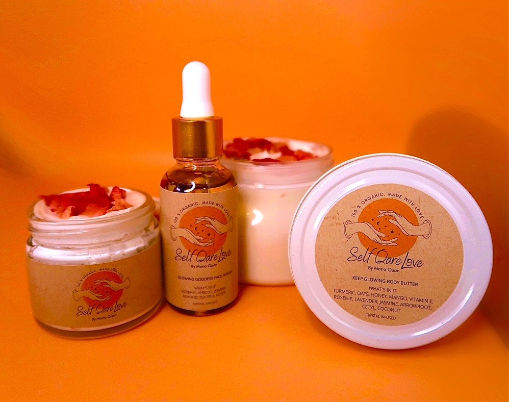 Self Qare Love by Maria Quan is 100% Organic. Vegan. Animal Cruelty-Free. Crystal Infused. Recyclable. Handmade with Love. If you love organic and crystal-infused skincare products, then you are in the right place! All products are handmade with so much love and help from Rose Quartz and Citrine crystals as well as full moon water! Indulge yourself in these rich-in-moisture skincare products and remember that a little Self Qare Goes A Long Way!