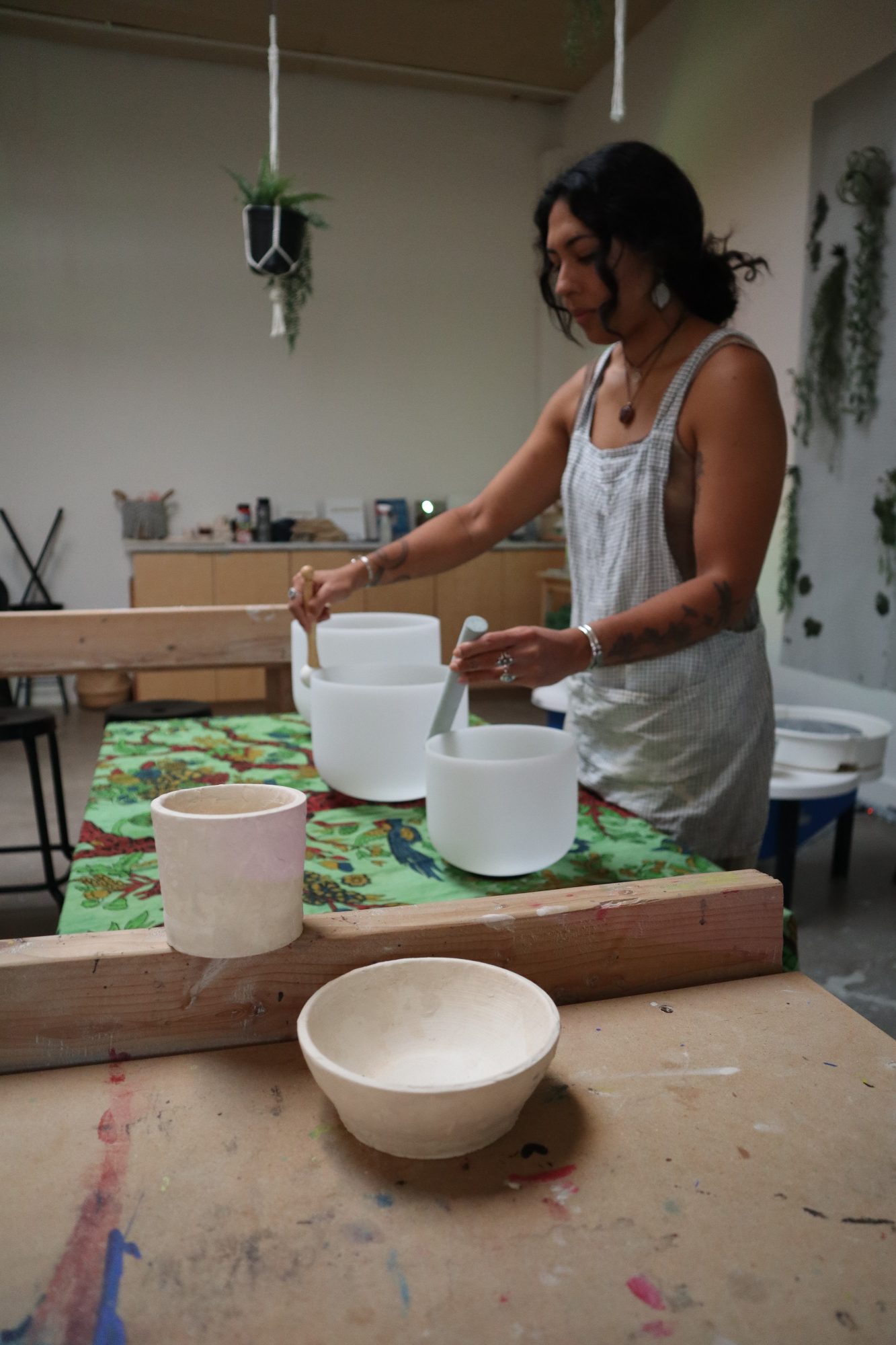 Our studios are the perfect pottery studio for beginner and hobbyist students. We offer classes for one-time students, and ongoing students, and workshops that focus on projects having to do with ceramics, wellness, creativity, and sustainability. We are known for our amazing class instructors and wellness fusion workshops that collaborate with local facilitators to create unique experiences. I would say this sets us apart from other studios that we focus on the fusion of mental health activities like journaling, sound healing, movement, etc. with clay. This has been a recent development in the business, one year now offering these experiences to further define the brand and make it niche and special. We are proud of the brand as it becomes something that the students and clients have an impact on, along with our beliefs in providing an accepting, diverse, authentic, creative zen space.