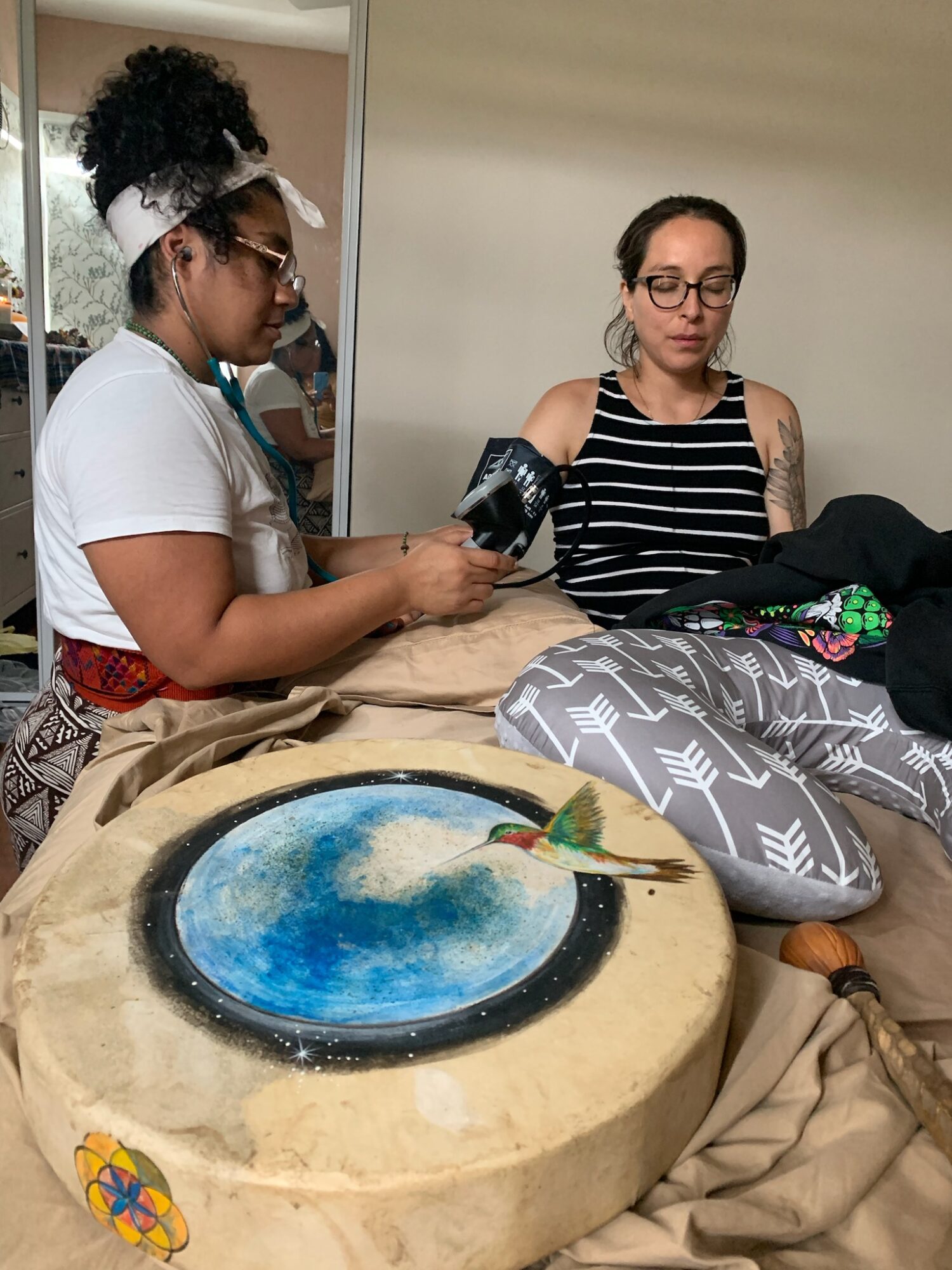 My practiced bloomed slowly over the years, I’d only do 1-3 births a year and was really focused on Uterine Health Counseling. When ever my friends would introduce me around and mention I was a midwife, I’d smile and nod but internally I was thinking “Why you tellin people I’m a midwife?” When folks would reach out for my services I was acting like some covert operative asking people ” Who sent you? You told you about me? What do you want?” I was not at all open about my work in the beginning. The transition out of midwifery school to having to start my own practice was tough. I was drained, felt disconnected from my original reasons for pursing midwifery and I had very little support. In 2018 I got invited to a predominantly black and indigenous womxyn’s spiritual retreat; where I had the opportunity to pray with other birth workers, and spiritually integrate everything I lived during midwifery school. At the end of that gathering all the birth workers received a blessing from the elder road woman; that was the moment I became comfortable calling myself a Midwife. As a Black Indigenous Midwife I needed that blessing for the way I wanted to practice, holding the indigenous technologies of birth at the forefront of my work and supplementing them with newer medical knowledge.