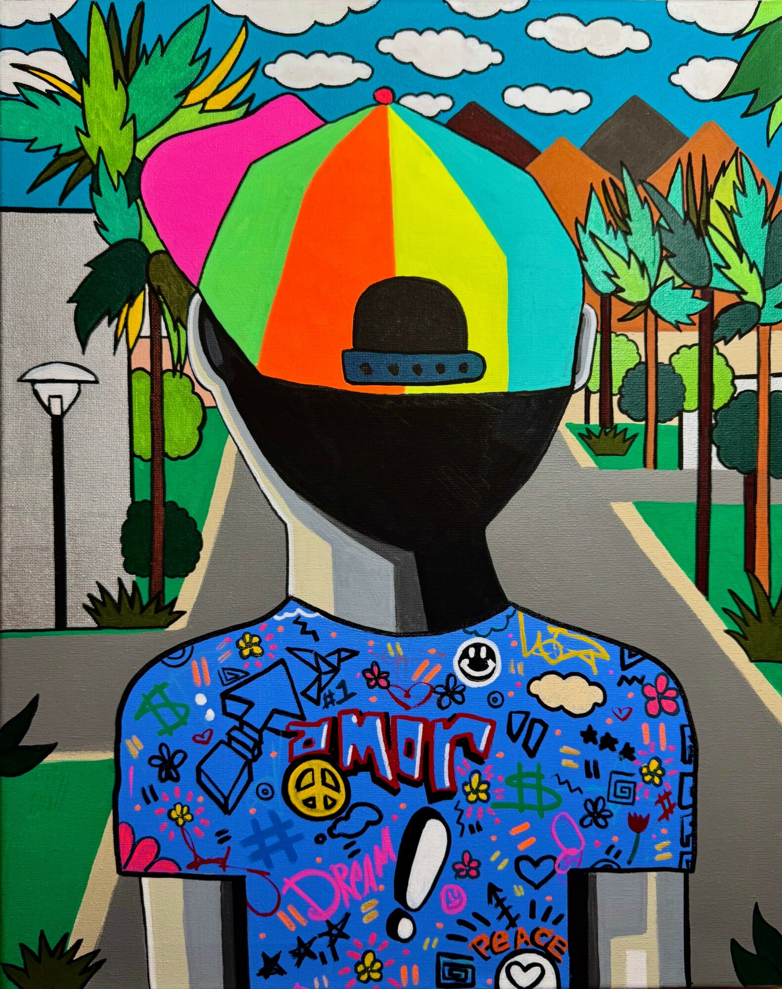My art is a combination of abstract portrait/figurative work, often with texture, street art, pop art and graffiti elements. Nature landscape and pattern work also play a big part in what I create. Recently getting more involved in fashion, creating my own one-off pieces of clothing, modeling for Avangard brands exploring screen printing and expressing influential ideas about fashion have become more prevalent. Having more opportunities to dive into photography in the last has been a huge part of what I am currently creating. Shooting portrait work, black and white photography, self-portrait, fashion, editorial and event photography are some of the things expressed in my photo work. Growing up loving interior design I also have had the opportunity to assist interior staging projects on large concept homes. I think my well-rounded approach to art not just as a painter as in the past now working in multi- faceted fields of art separates me from a lot of artists but also is relatable to a lot of artists. Most creatives have other creative passions, and I think by showing mine it inspires others to pursue theirs. I think the past year working on projects for Barbie, creating work for my third museum show, and being honored Grand Mashal of Palm Springs for Gay Pride as an artist were all highlights for me. I think the greater success was doing this while getting out of an abusive relationship, dealing with homelessness, losing family and friends while adapting to new social environments that weren’t as accepting to the ones I’ve experienced in the past.
