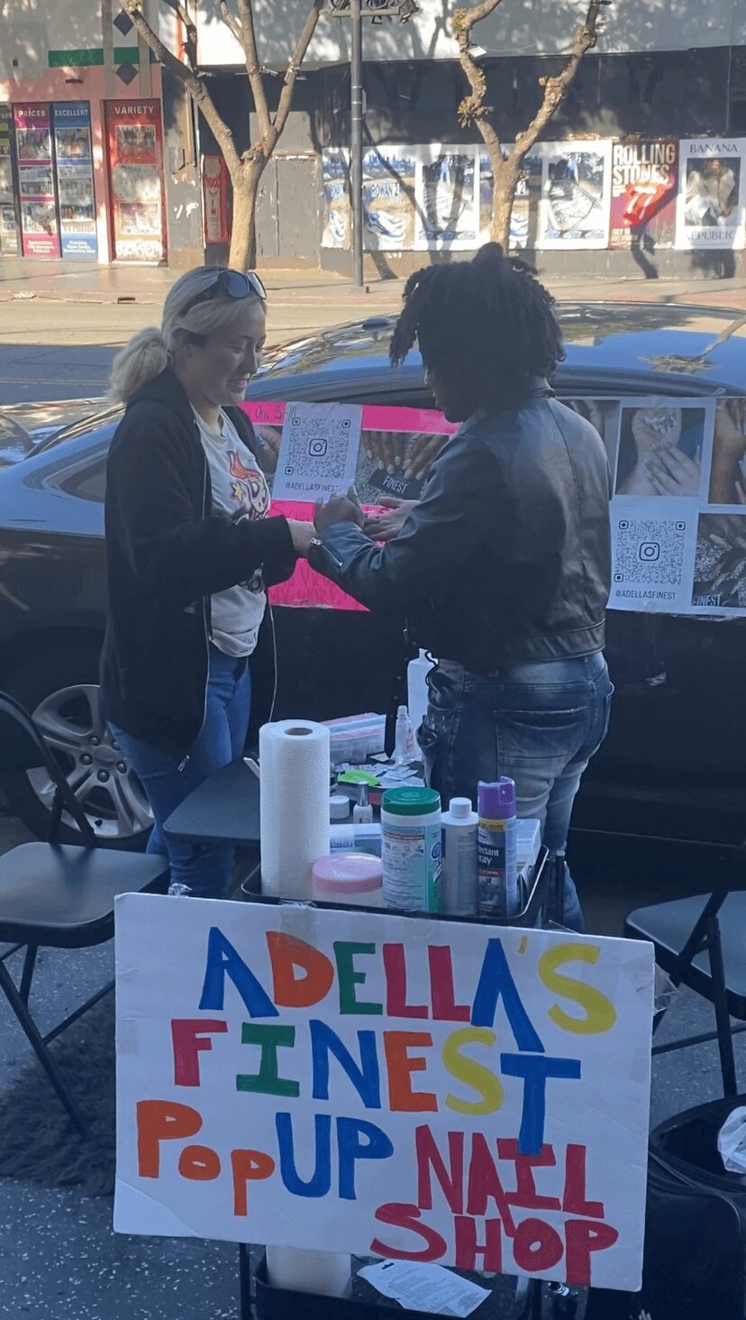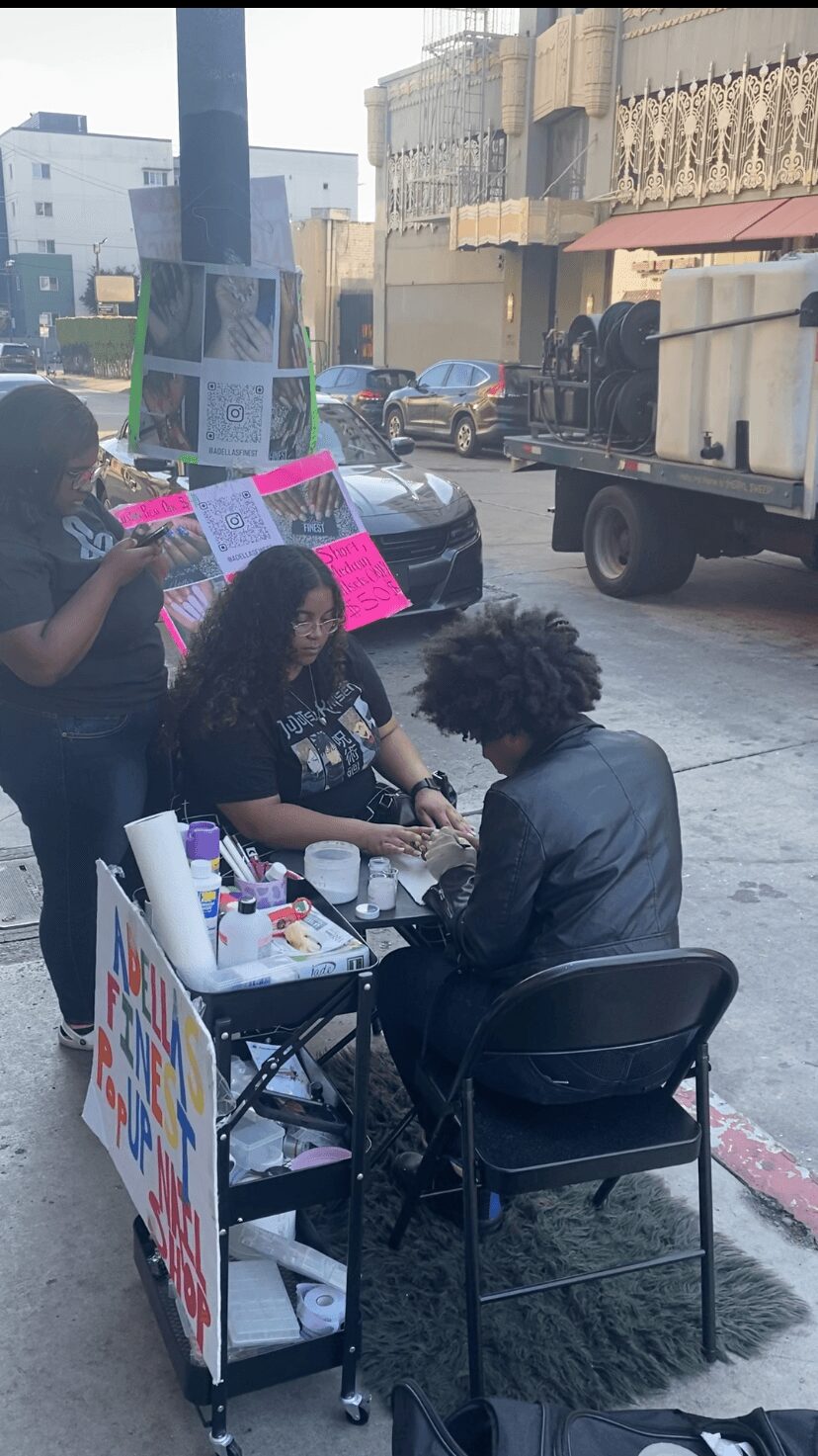 My name is Adella Burrell owner of Adella’s Finest . I came to California fresh out of high school in 2022. I started my business back home in South Carolina where I was 15 years old doing nails and hair. I got my cosmetology license in high school and I graduated with it . When I came down to California I had a version for myself and my city because not a lot of country girls ever leave their state or home town. I started a pop up shop on Hollywood blvd and posted it on social media which got 7.4 million views . Ever since then I have been still pursuing my dream to inspire others to step outside their box or comfort zone and also chasing their dreams as well in life .