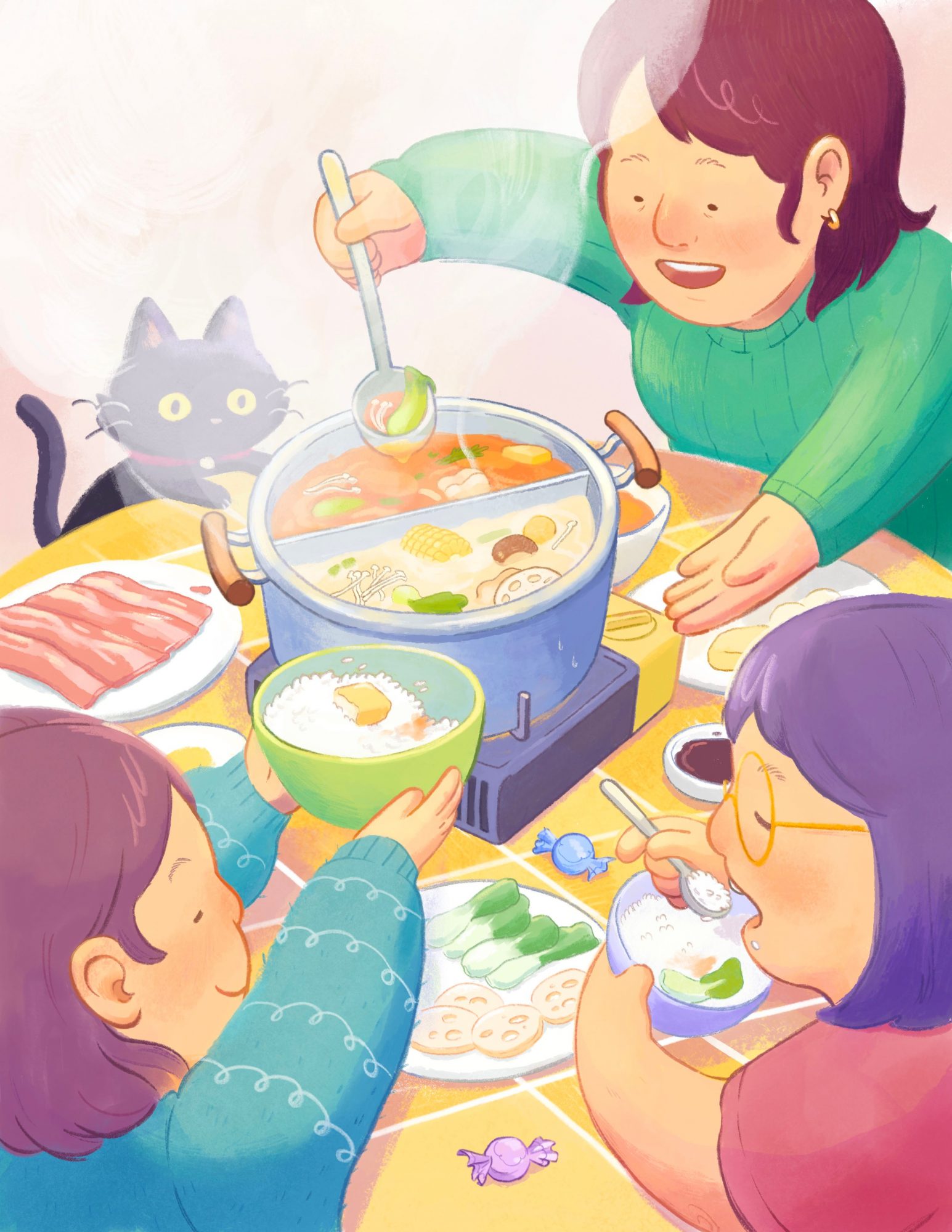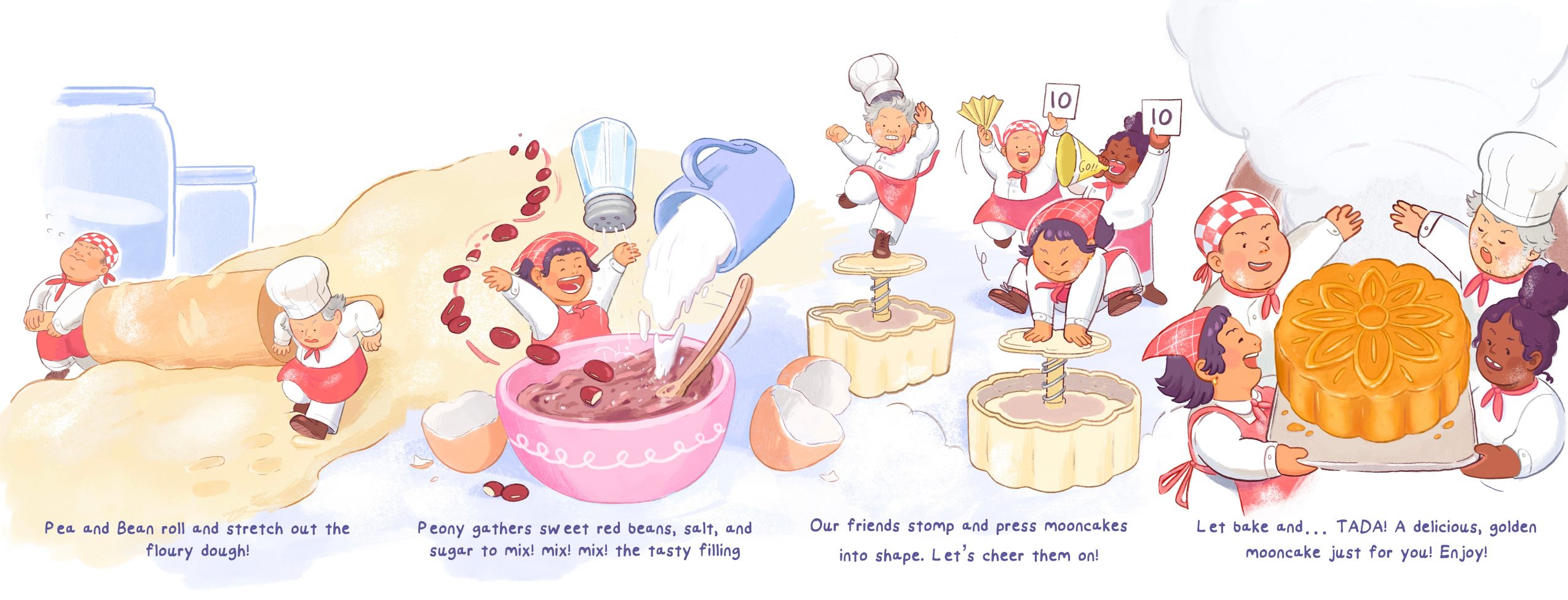 I strive for my work to radiate warmth and evoke all sorts of emotions; I absolutely adore picture book illustrations. My work is vibrantly colored, playful, with chaotically controlled environments. Each inch of my canvas has been well thought out before I bring my work to completion, and everything has a purpose and reason behind it! Perhaps there’s a hint or a personal connection or even a joke hidden among the details. But what I’m most proud of are the illustrations that revolve around my Chinese-American heritage! Experiences and foods that I grew up with are reimagined the way I remembered them. I say this a lot, but I believe it’s so important: everyone has personal stories to tell, and you know it the best… draw, paint, or write them! Hearing people being able to relate or feel the work I put out there makes what I do feel extra special.