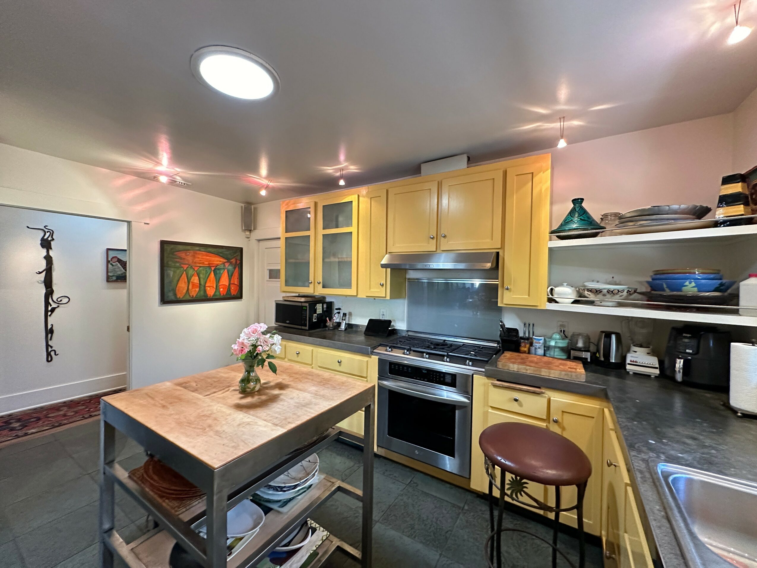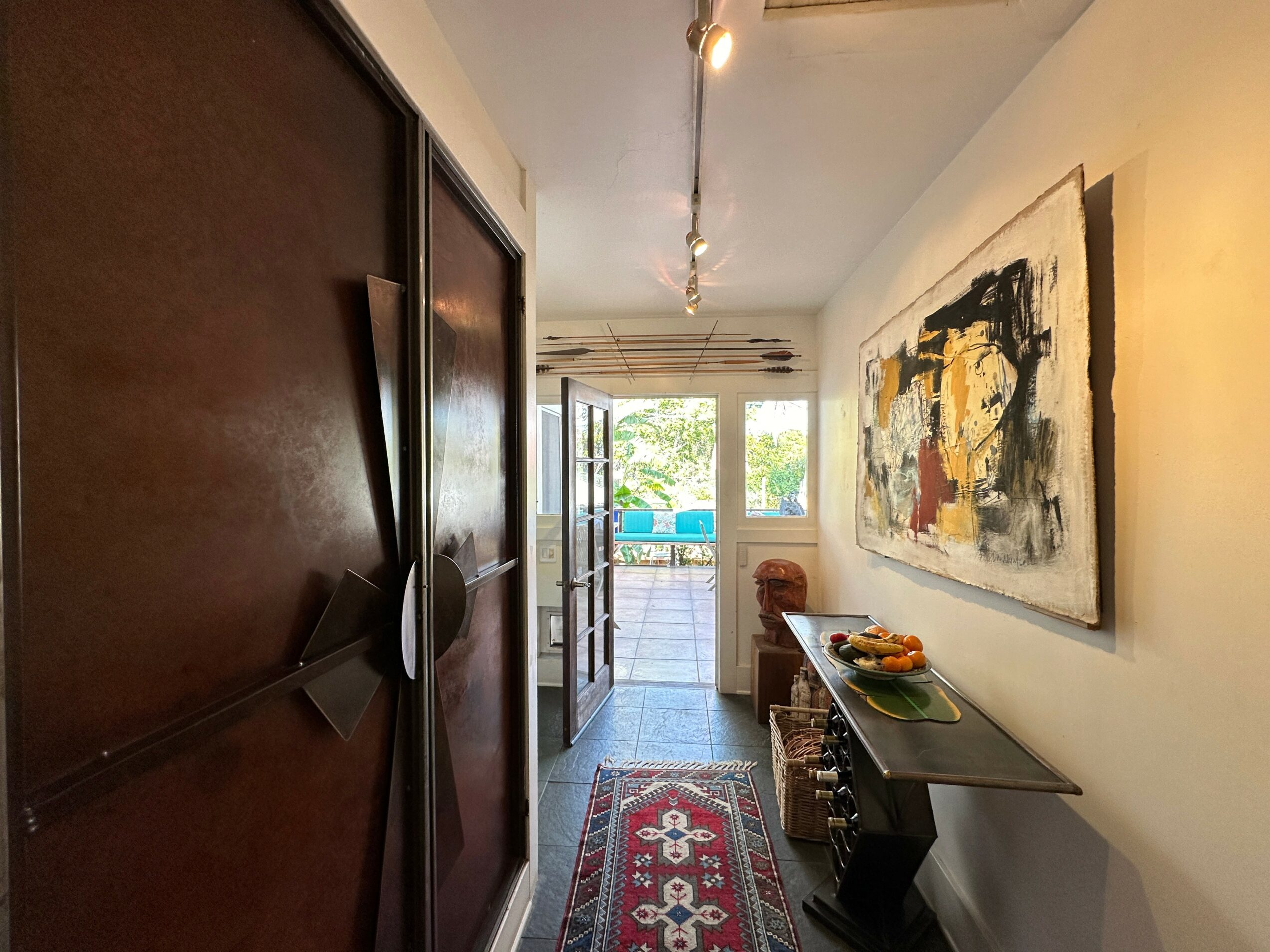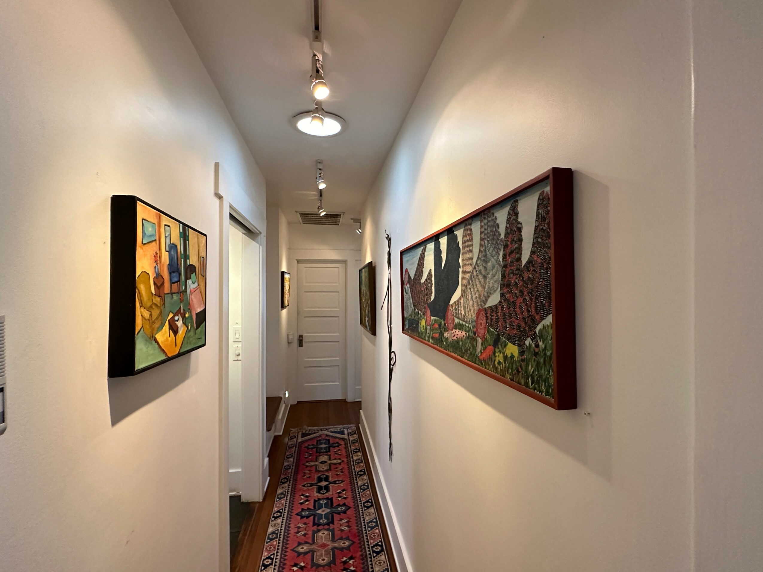 So off we went on our first buying trip. When we came back, we realized we had no lighting system, everything had to be framed, there was no mailing list, and we had no clue about how to operate an art gallery! So, we got to work figuring it all out, and within a couple of years, we had been written about in the Los Angeles Times, Vanity Fair magazine, Bon Appetit magazine, and featured in various television outlets. The gallery really took off. Today, although we are known for specializing in Haitian art, I think of us as a contemporary ethnic art gallery, which features works by artists of color from around the world. Our home has doubled as a private art gallery for 35 years (we’re open by appointment). It operates out of our Craftsman style house with two sculpture gardens. There is art everywhere.