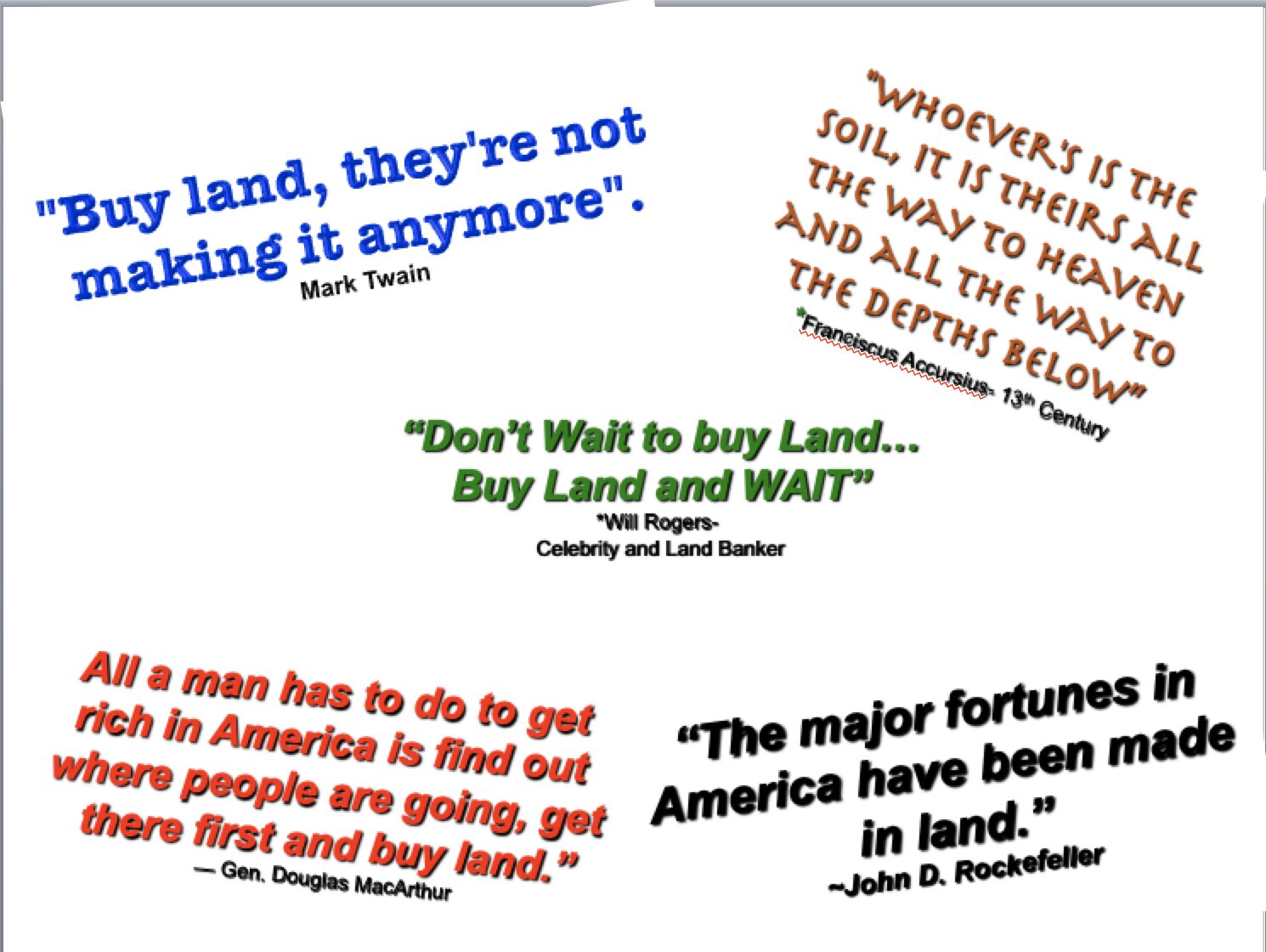 Various quotes of Land investors of old.