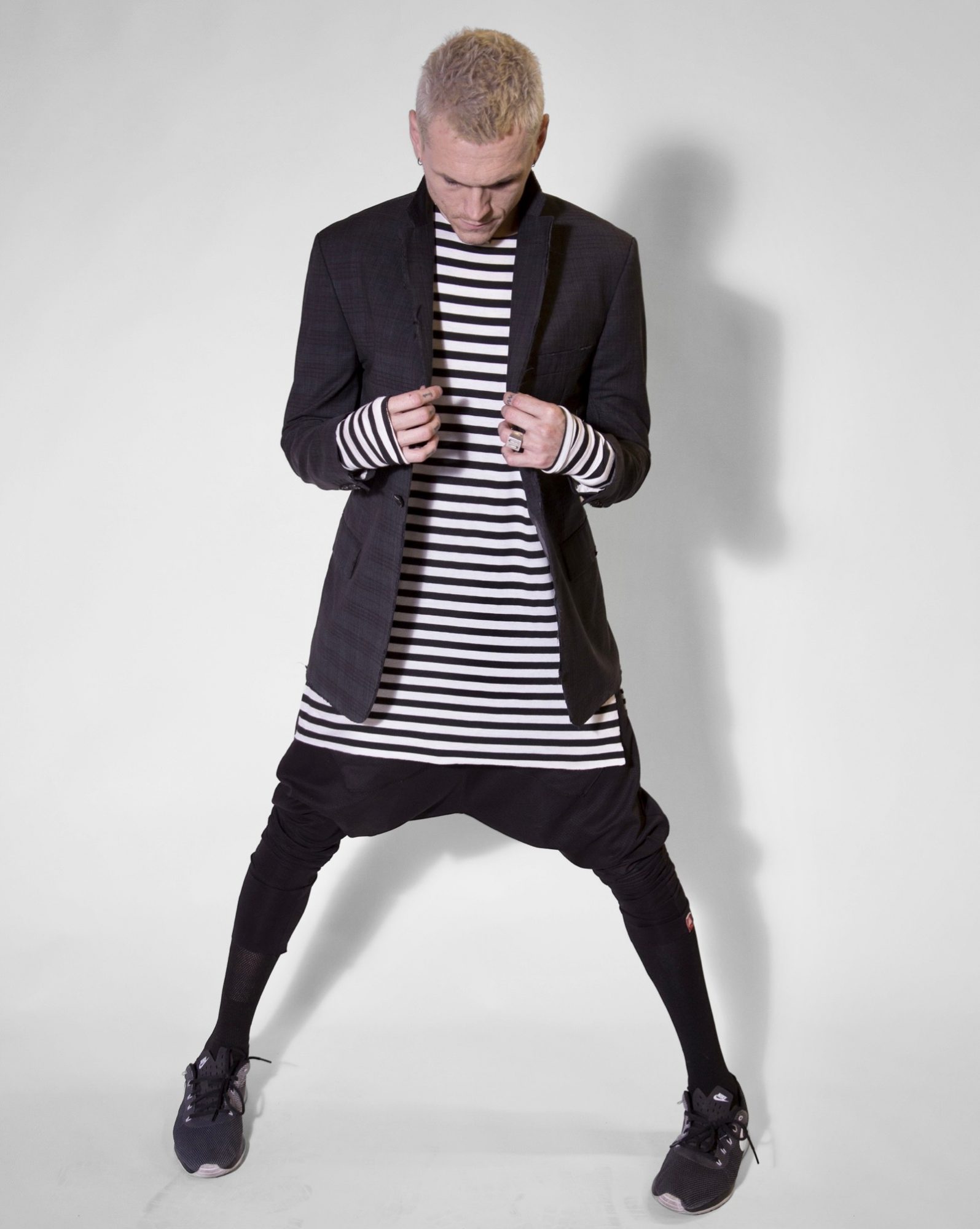 I was an international touring drummer for a bunch of local Los Angeles bands from 2007-2017. (Julien-K/ Dead By Sunrise, SKOLD and “The Eli James Experience!” to name a few). As a touring artist, I always had a hard time finding great clothing that fit my lifestyle.. going to the gym, meetings, red carpets, dinners/ music business hangs, studios, etc.. all while working seven jobs to keep the dream alive. The trick was to “be” the touring musician without showing I was juggling the side jobs. The “fake it till you make it” juggle. I’ve always altered my clothing making it more like “me” and my style so one day, I randomly decided to just make my own clothes. I mean, why not?! Mainly for stage but also for my everyday life, I call a circus. Lol…