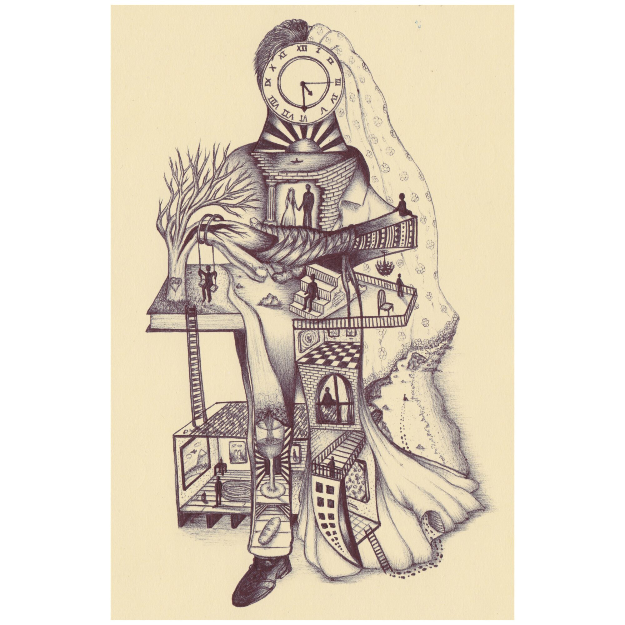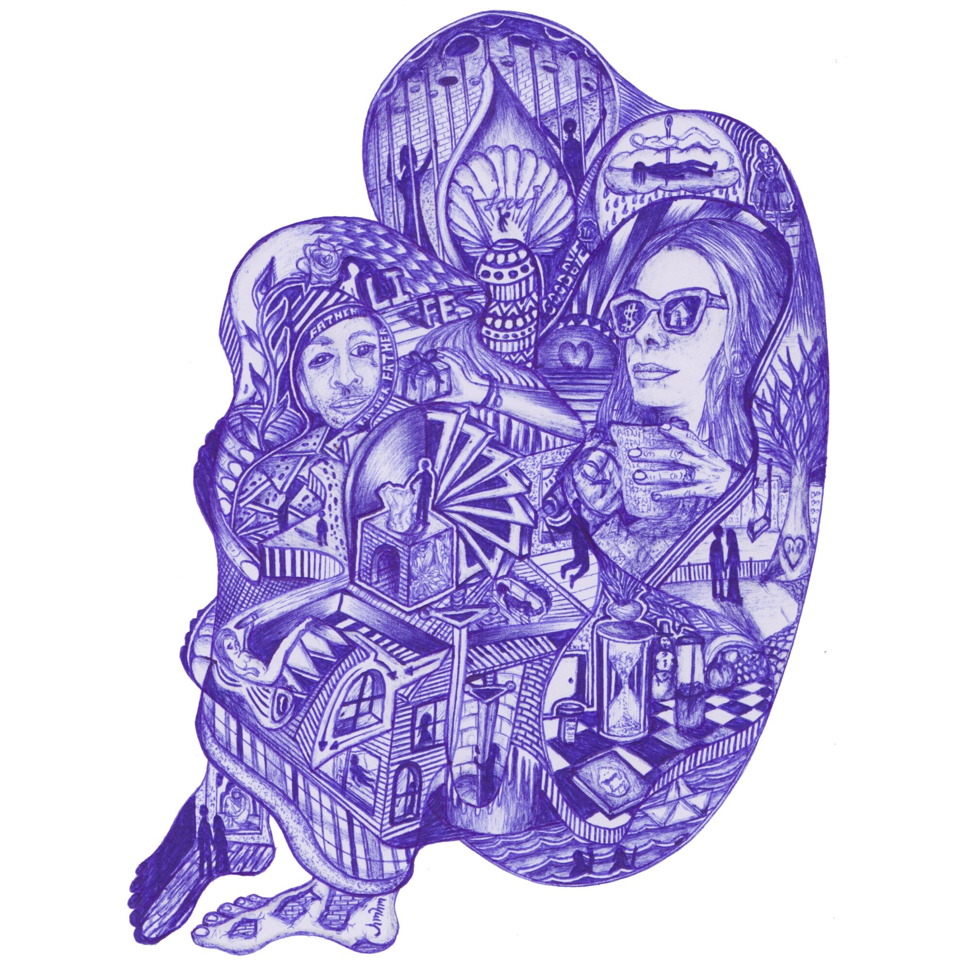 I am most known for my intricate artwork that can visually tell the story of what is happening in my life through symbolism, and the interconnected weaving of emotions and life events that characterize that time in my life. My murals do the same for the communities and neighborhoods they are painted. I have the gift of extracting imagery from underneath the surface of what is “not being said” and bringing it to life in a more holistic representation. One drawing I am incredibly proud of is about my wife and the challenges, growth, and heartache that we went through while trying to have a child. The piece is aptly called Miss Carriage, and depicts the moment we learned of her first pregnancy coming to a halt. This piece bonded us together as my wife wrote a poem, and I was able to put imagery to her words. Many of my pieces are deeply personal and therefore aren’t necessarily for everyone, but they hold a palpable truth. I also do work that is more enjoyable to the public and has a similar style, but I am most proud of the work that resonates at a deeper level.
