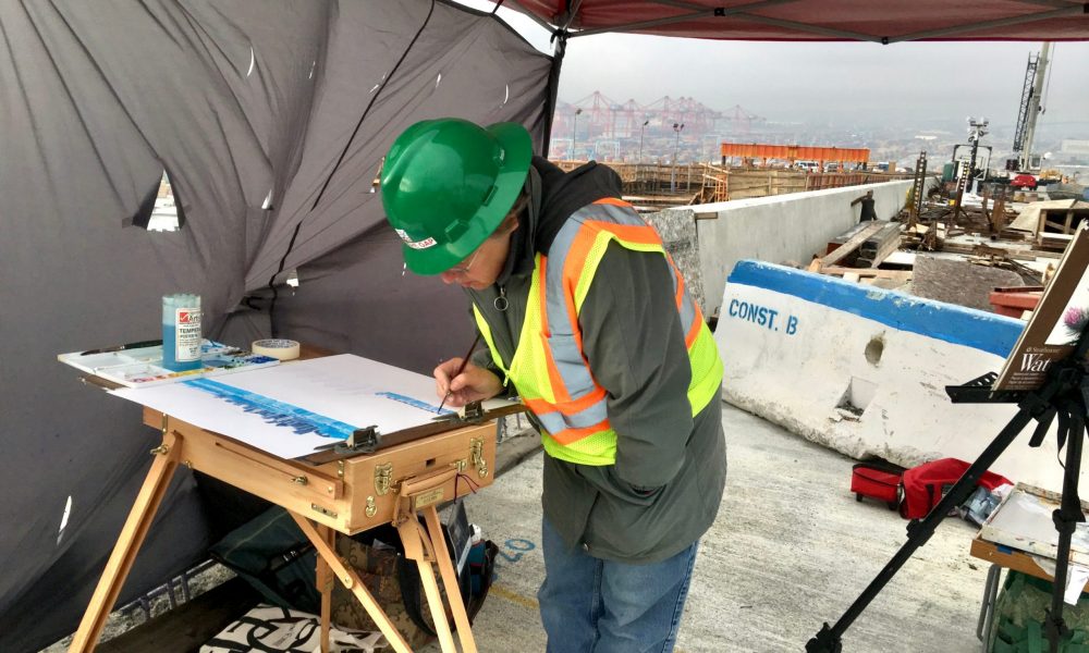 For several years I documented the construction of Long Beach’s new bridge—on location—standing on top of the half-completed bridge near the edge of the drop, among the cranes. This allowed me to explore my love for the geometry and complexity of the harbor. Millennials, portraits of young people, peeled back their social veneers revealing the vulnerable persons underneath. Through my work with models, I strengthened my understanding of the figure. Most recently, a deep emotional response to the political turmoil of the past few years motivated the series Black Lives Matter: Entering an Era of Rebellion. I used both painting and printmaking to push my development of imagery and materials.