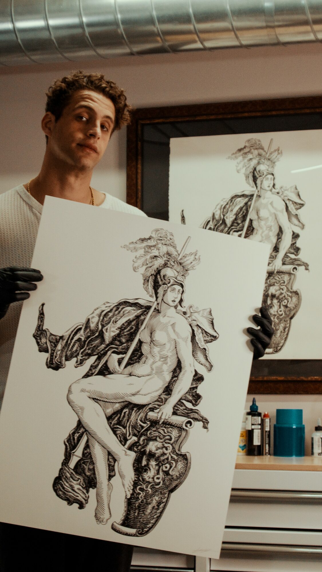 My style is inspired by mythology, romanticism, and the old techniques of gravure, using fine, consecutive lines to create deep, storytelling images. I like to bring that feeling of timelessness into modern objects, turning machines into artworks that carry emotion, texture, and history.