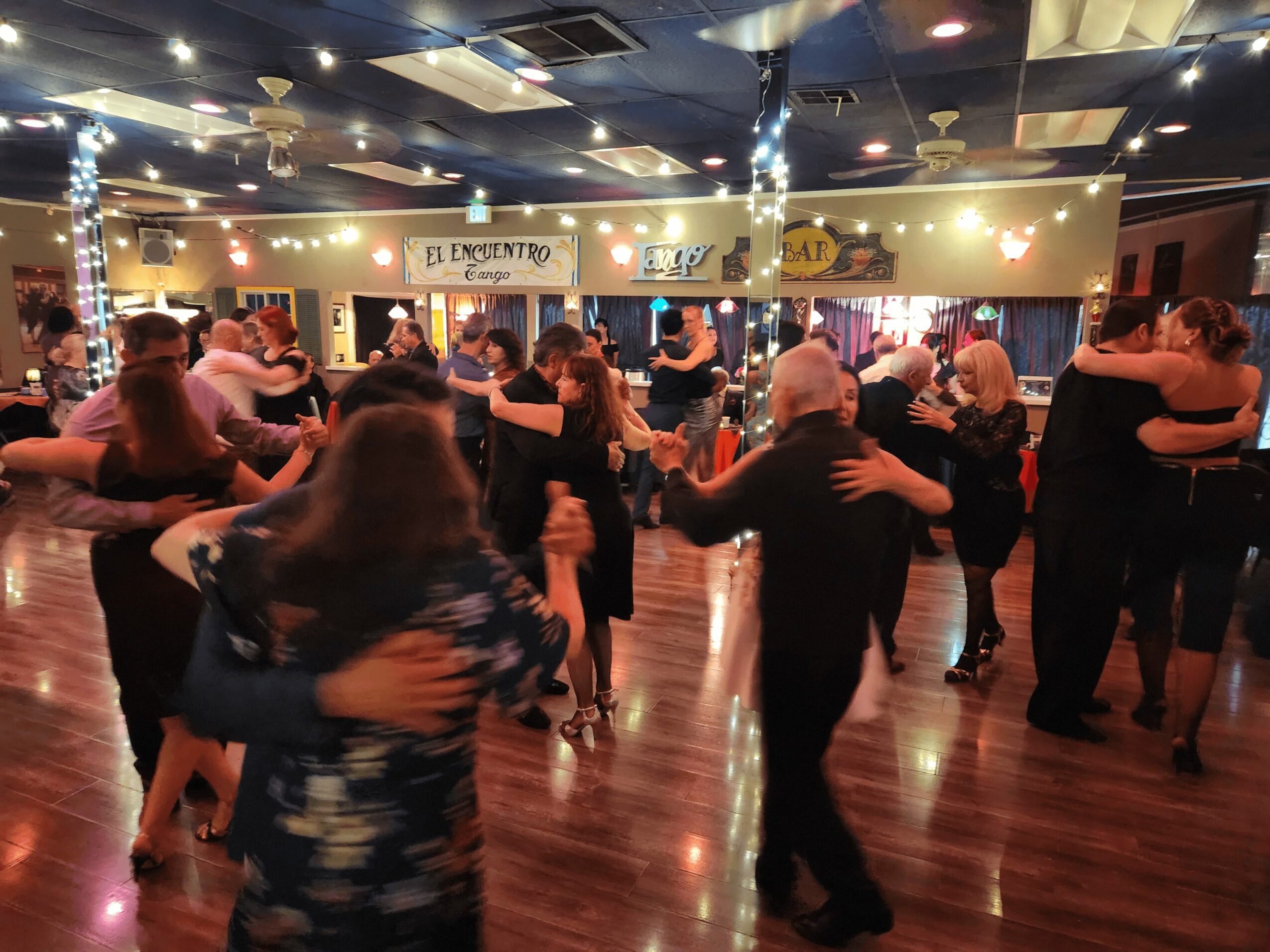 So back to our trajectory. My husband I have had the joy and honor of hosting El Encuentro every Saturday night for twenty-five years. Because my husband was born in Buenos Aires and grew up dancing tango, he was very clear that he wanted El Encuentro and The Tango Room to offer the experience of authentic traditional tango in a setting like one would find in Buenos Aires. So every Saturday night The Tango Room transforms into a tango nightclub and people from all over SoCal and even from around the world come to dance the night away. At least two times a month we have world-renowned performers dance for us. We are proud that The Tango Room has a world-wide reputation of quality and authenticity, offering the best instruction with an Argentine-born teacher in every class.